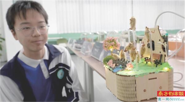 北师附校学子将现代科技与非遗项目交融,展示自制的新作品“北京毛猴”。