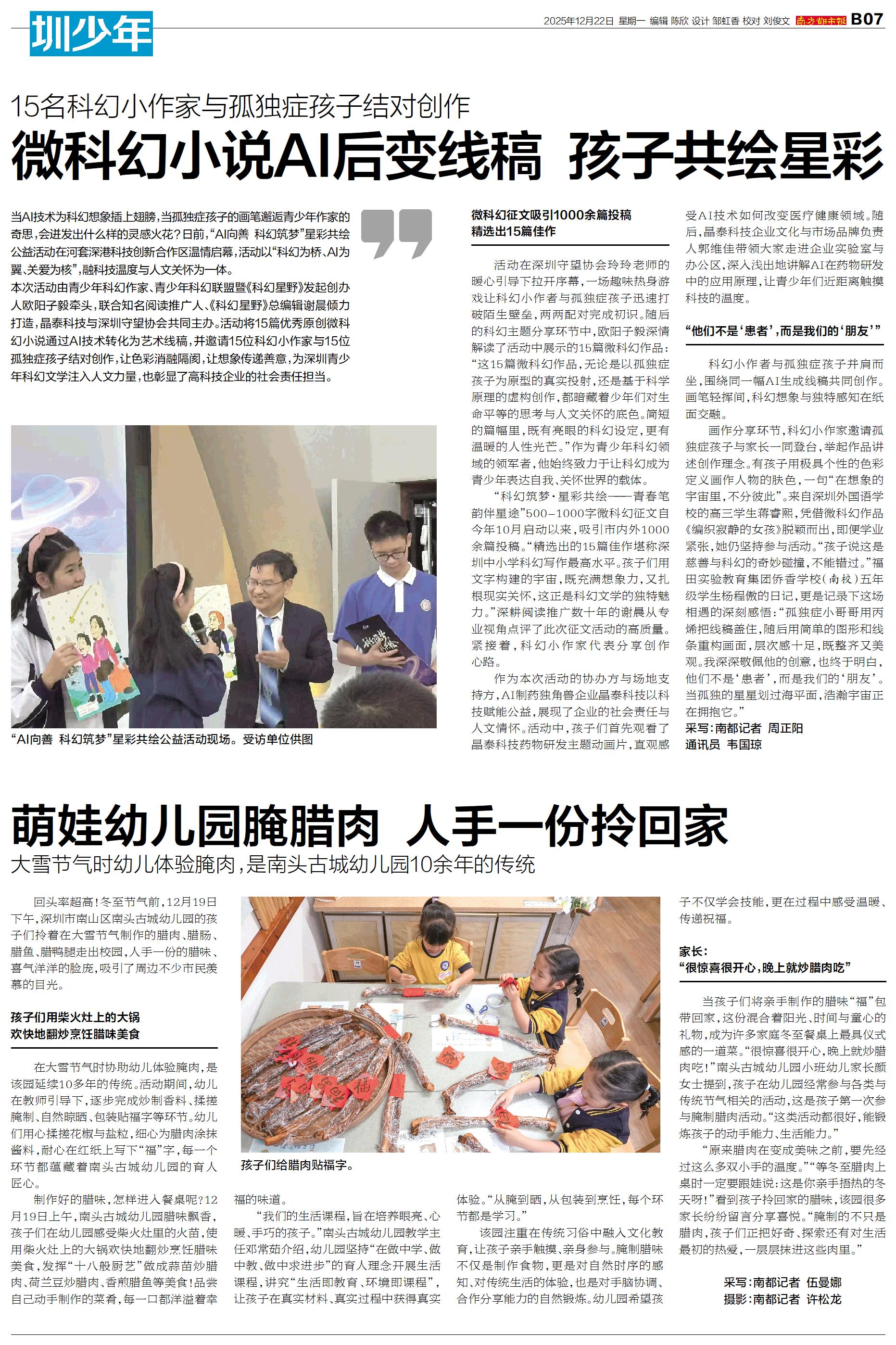 当AI技术为科幻想象插上翅膀,当孤独症孩子的画笔邂逅青少年作家的奇思,会迸发出什么样的灵感火花?日前,“AI向善 科幻筑梦”星彩共绘公益活动在河套深港科技创新合作区温情启幕,活动以“科幻为桥、AI