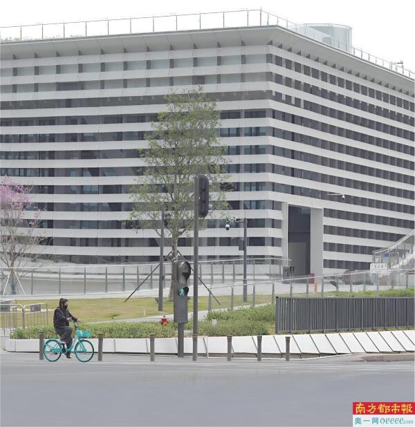 拆除招牌后的“湾区之眼”外立面,恢复了建筑原本干净利落的银白色格栅设计。 南都记者 刘有志 摄