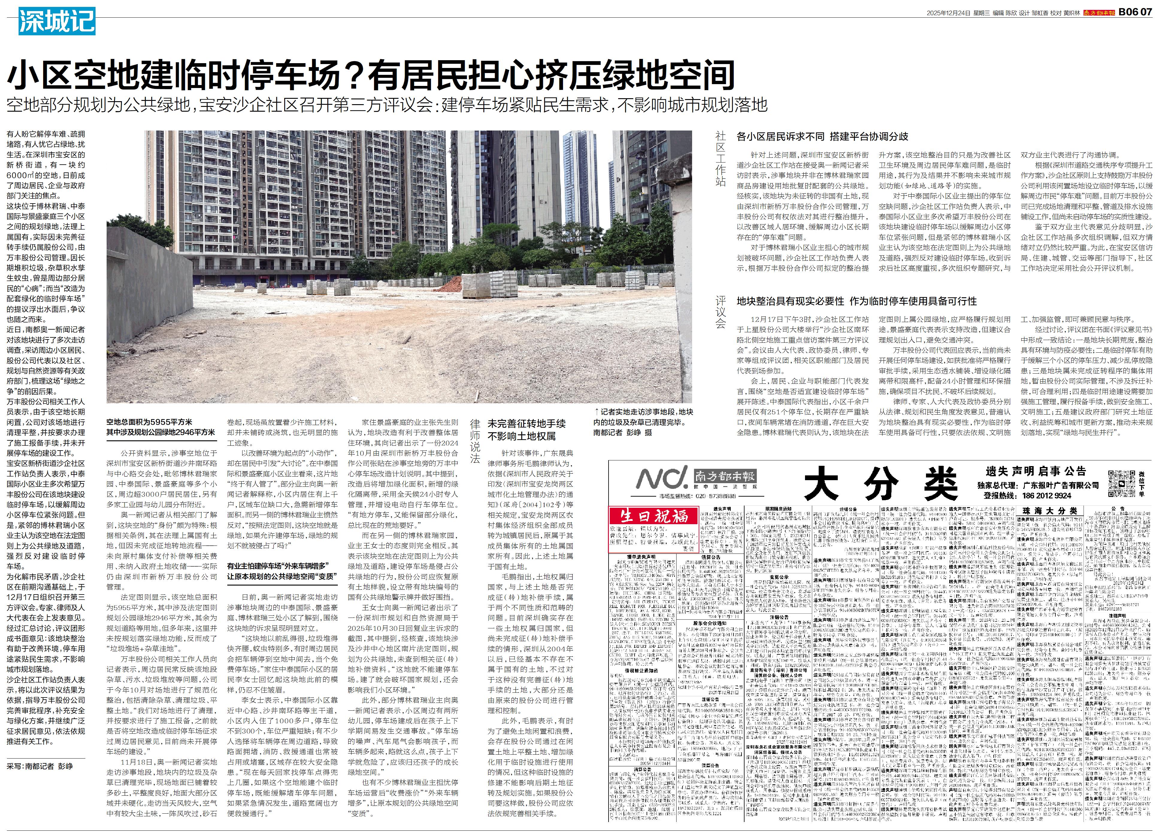 有人盼它解停车难、疏拥堵路,有人忧它占绿地、扰生活。在深圳市宝安区的新桥街道,有一块约6000㎡的空地,日前成了周边居民、企业与政府部门关注的焦点。 这块位于博林君瑞、中泰国际与景盛豪庭三个小区