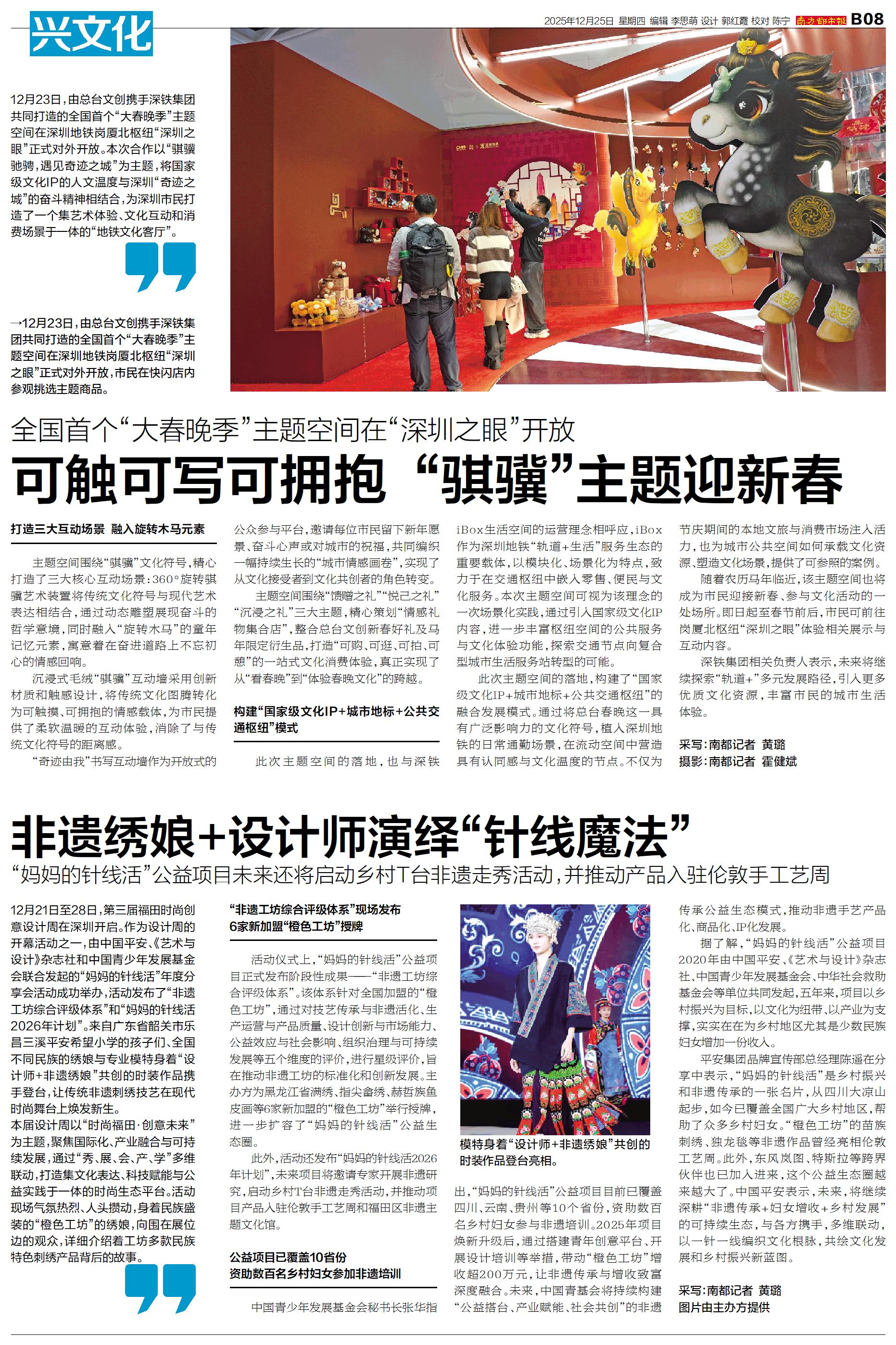 12月23日,由总台文创携手深铁集团共同打造的全国首个“大春晚季”主题空间在深圳地铁岗厦北枢纽“深圳之眼”正式对外开放。本次合作以“骐骥驰骋,遇见奇迹之城”为主题,将国家级文化IP的人文温度与深圳