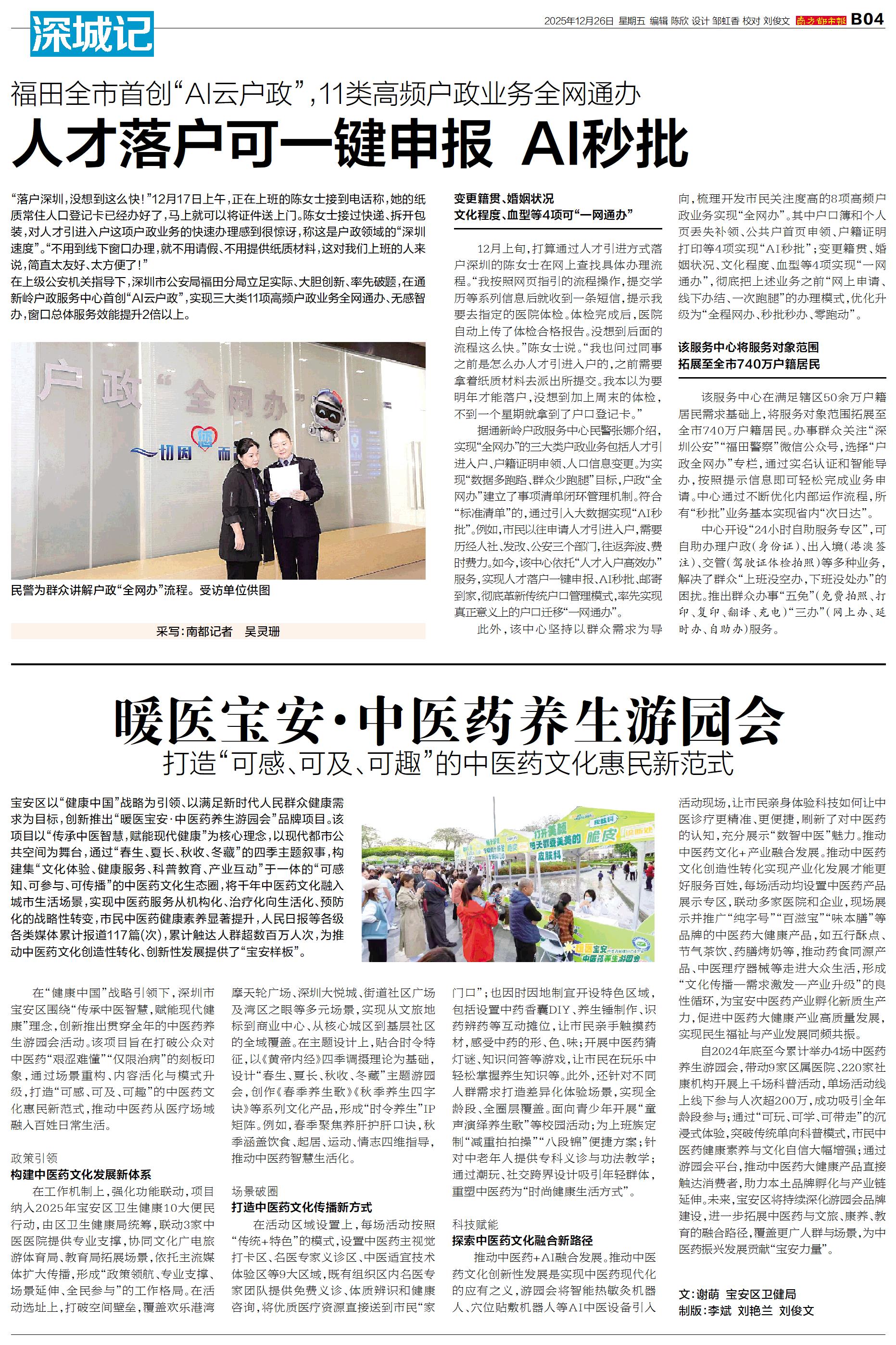 宝安区以“健康中国”战略为引领、以满足新时代人民群众健康需求为目标,创新推出“暖医宝安·中医药养生游园会”品牌项目。该项目以“传承中医智慧,赋能现代健康”为核心理念,以现代都市公共空间为舞台,通过