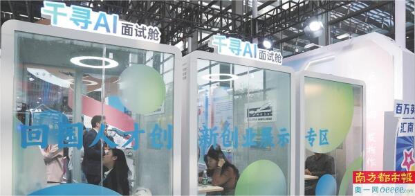有摊位设立了AI面试舱,为企业HR面向海外留学生提供远程面试的空间。
