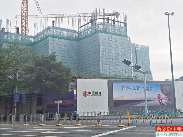 南都记者日前实地探访项目看到,主体楼栋出地面不高,正处于钢筋结构搭建阶段,外立面被密密的脚手架与防护网整体包裹,现场塔吊仍在作业。