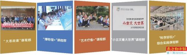 其中,大思政课程群筑牢知行合一价值场,整合多学科思政元素,构建“全员、全程、全方位”育人体系。“行走的思政课——读行祖国大地”为每学年必修项目。小初衔接跨学科古文课程群激活经典育人价值。从2023年起,该校以经典小古文为载体,开展小初衔接“小古文看大世界”跨学科项目式课程,构建语文与数学、历史、科学、美术、心理、道法、物理等学科的“知识联结图谱”。