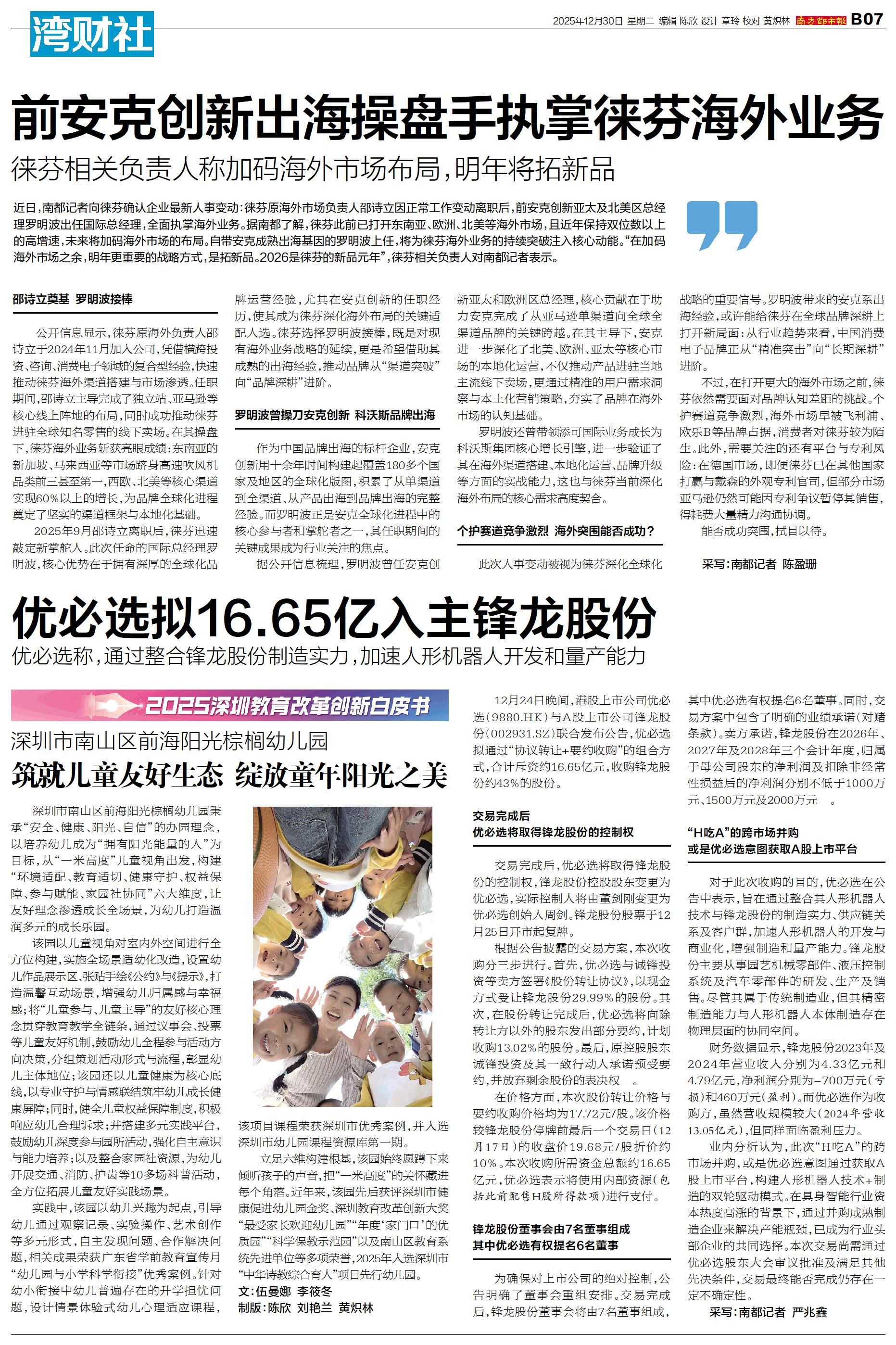 12月24日晚间,港股上市公司优必选(9880.HK)与A股上市公司锋龙股份(002931.SZ)联合发布公告,优必选拟通过“协议转让+要约收购”的组合方式,合计斥资约16.65亿元,收购锋龙股份