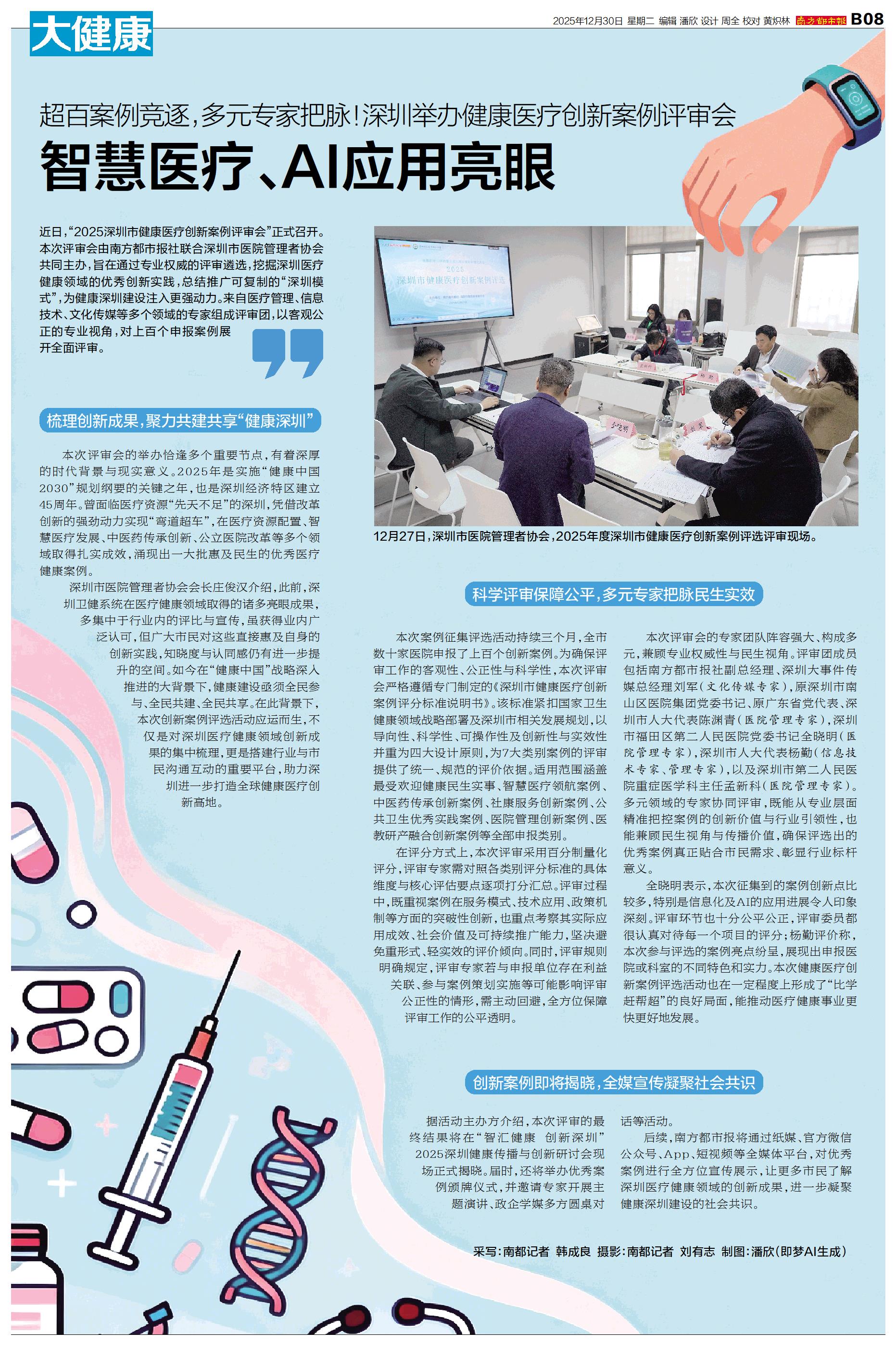 近日,“2025深圳市健康医疗创新案例评审会”正式召开。本次评审会由南方都市报社联合深圳市医院管理者协会共同主办,旨在通过专业权威的评审遴选,挖掘深圳医疗健康领域的优秀创新实践,总结推广可复制的“