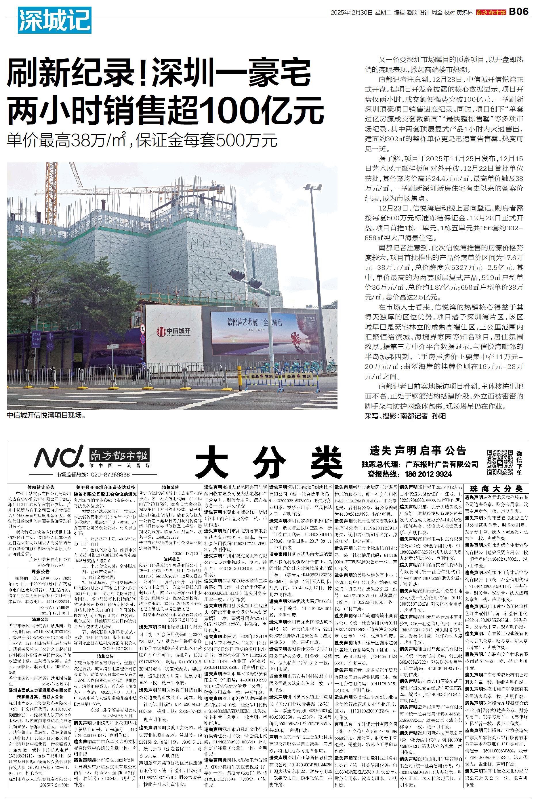 刷新纪录!深圳一豪宅两小时销售超100亿元