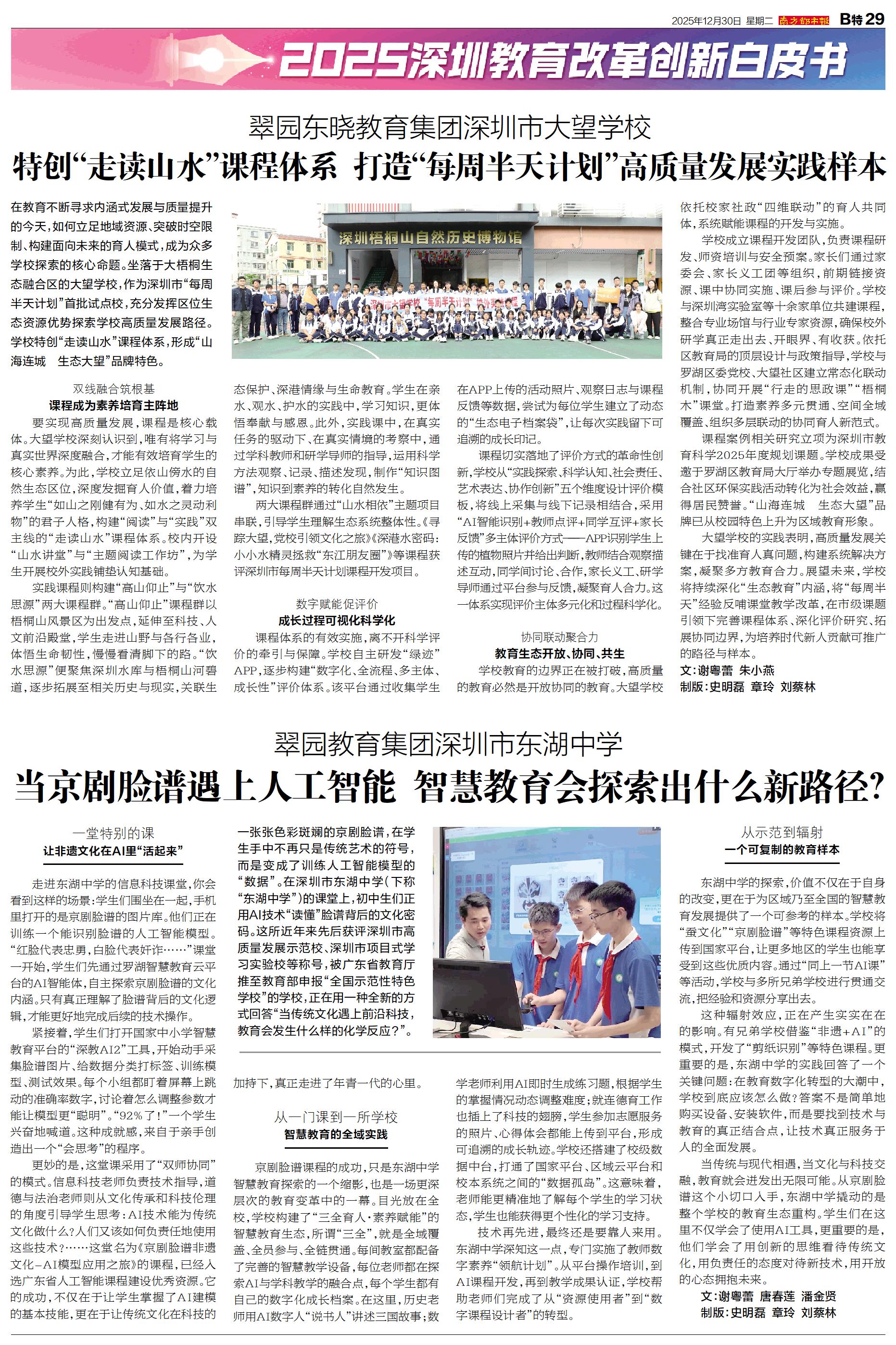 在教育不断寻求内涵式发展与质量提升的今天,如何立足地域资源、突破时空限制、构建面向未来的育人模式,成为众多学校探索的核心命题。坐落于大梧桐生态融合区的大望学校,作为深圳市“每周半天计划”首批试点校