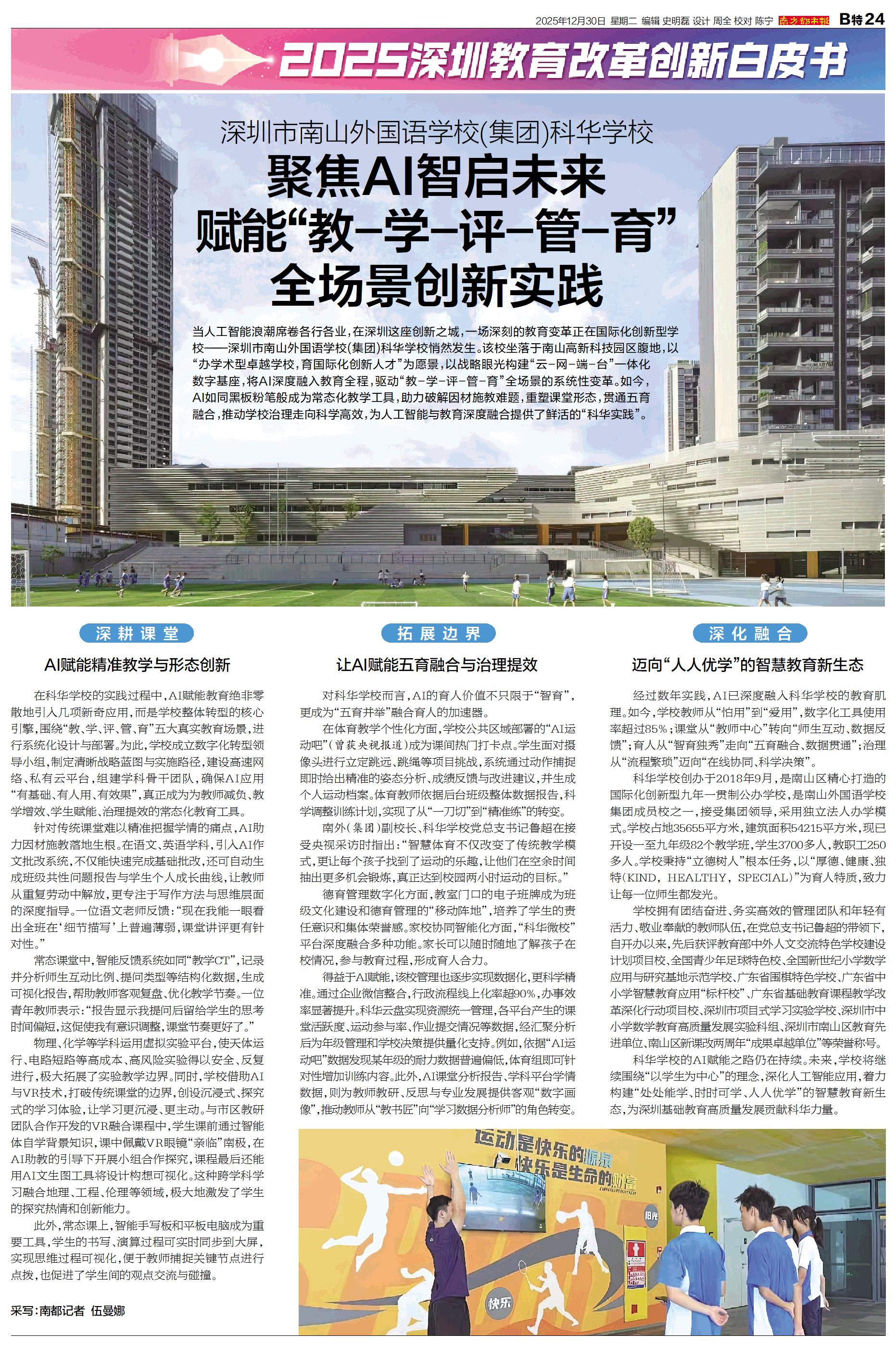 当人工智能浪潮席卷各行各业,在深圳这座创新之城,一场深刻的教育变革正在国际化创新型学校——深圳市南山外国语学校(集团)科华学校悄然发生。该校坐落于南山高新科技园区腹地,以“办学术型卓越学校,育国际