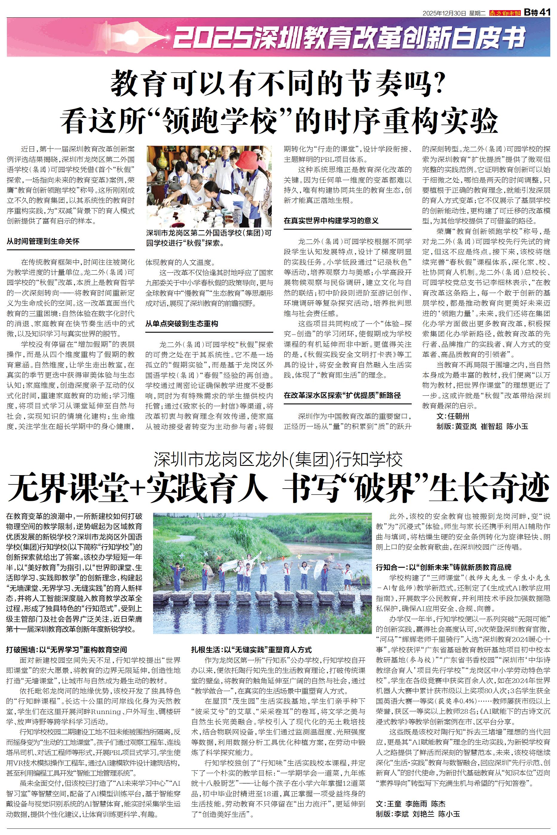 在教育变革的浪潮中,一所新建校如何打破物理空间的教学限制,逆势崛起为区域教育优质发展的新锐学校?深圳市龙岗区外国语学校(集团)行知学校(以下简称“行知学校”)的创新探索就给出了答案。该校办学短短一