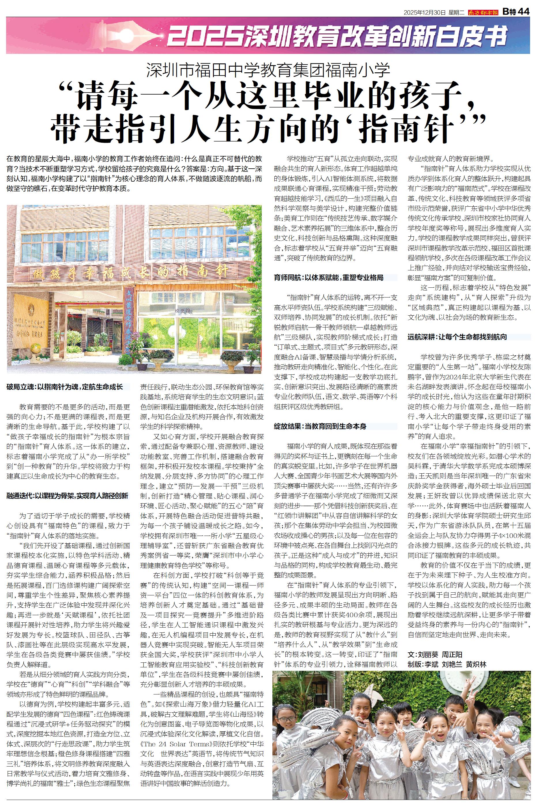 在教育的星辰大海中,福南小学的教育工作者始终在追问:什么是真正不可替代的教育?当技术不断重塑学习方式,学校留给孩子的究竟是什么?答案是:方向。基于这一深刻认知,福南小学构建了以“指南针”为核心理念