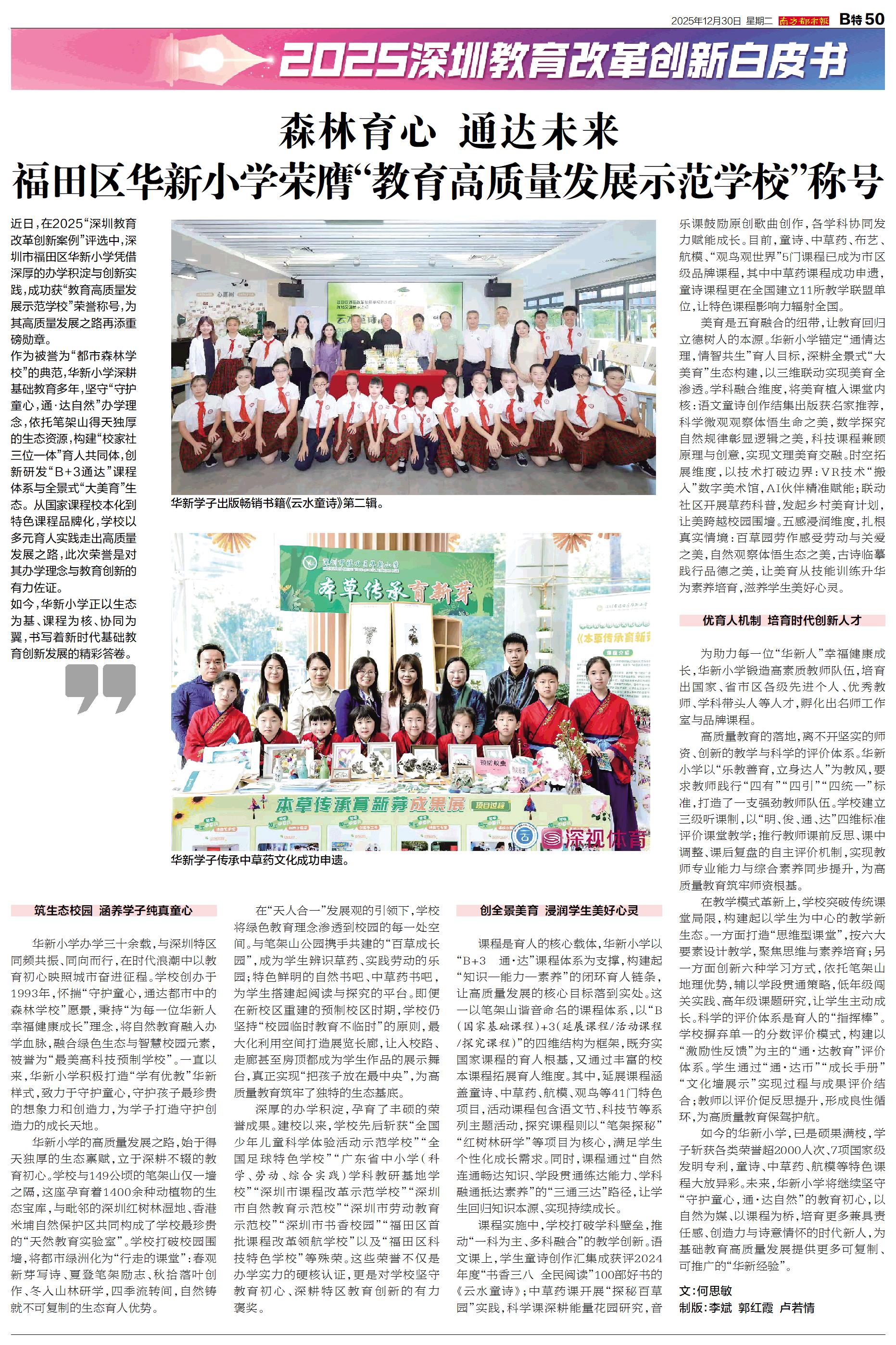 "都市森林学校”的高质量发展之路 福田区华新小学书写新时代基础教育创新答卷