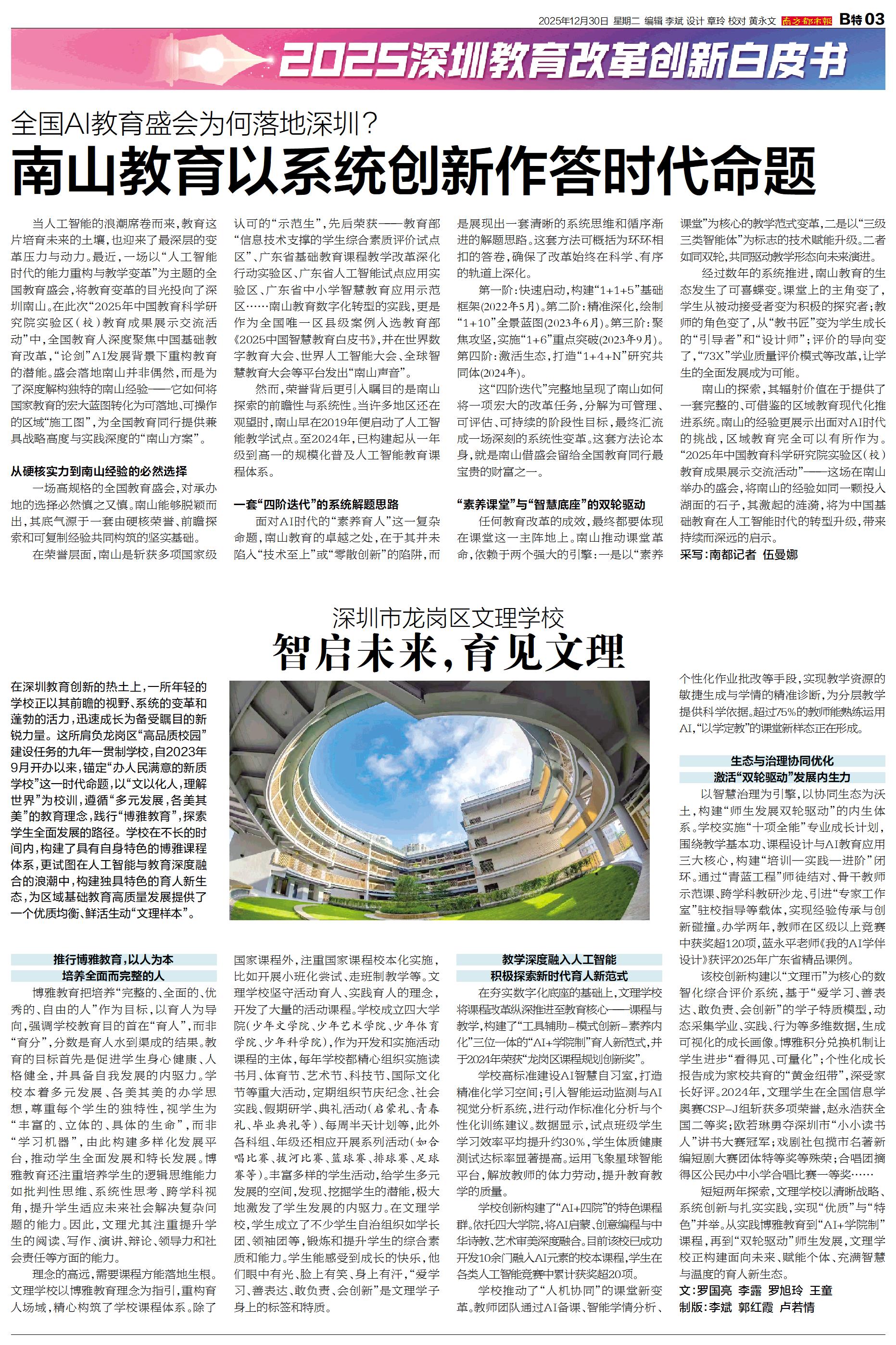 当人工智能的浪潮席卷而来,教育这片培育未来的土壤,也迎来了最深层的变革压力与动力。最近,一场以“人工智能时代的能力重构与教学变革”为主题的全国教育盛会,将教育变革的目光投向了深圳南山。在此次“20