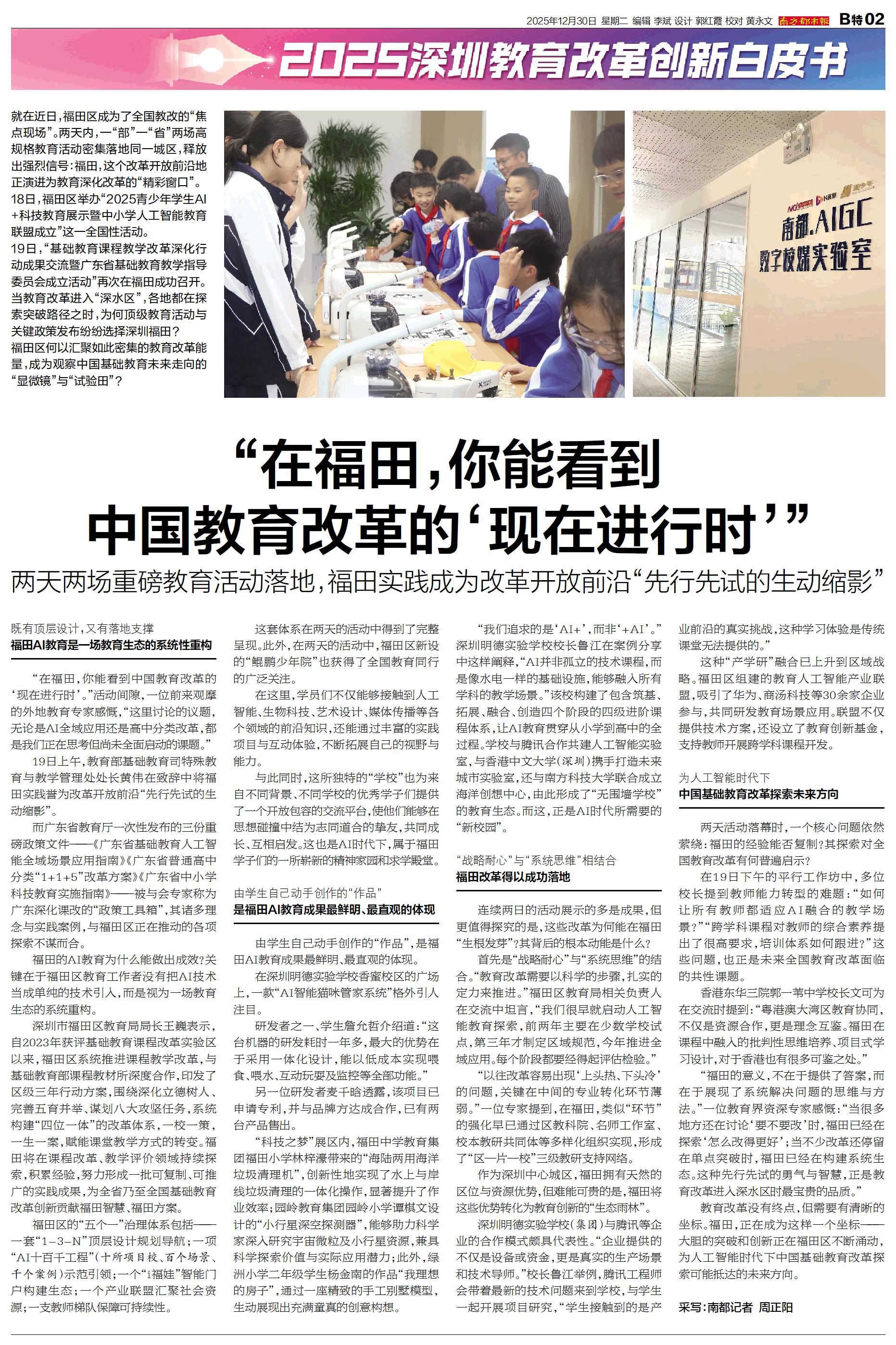 “在福田,你能看到中国教育改革的‘现在进行时’”