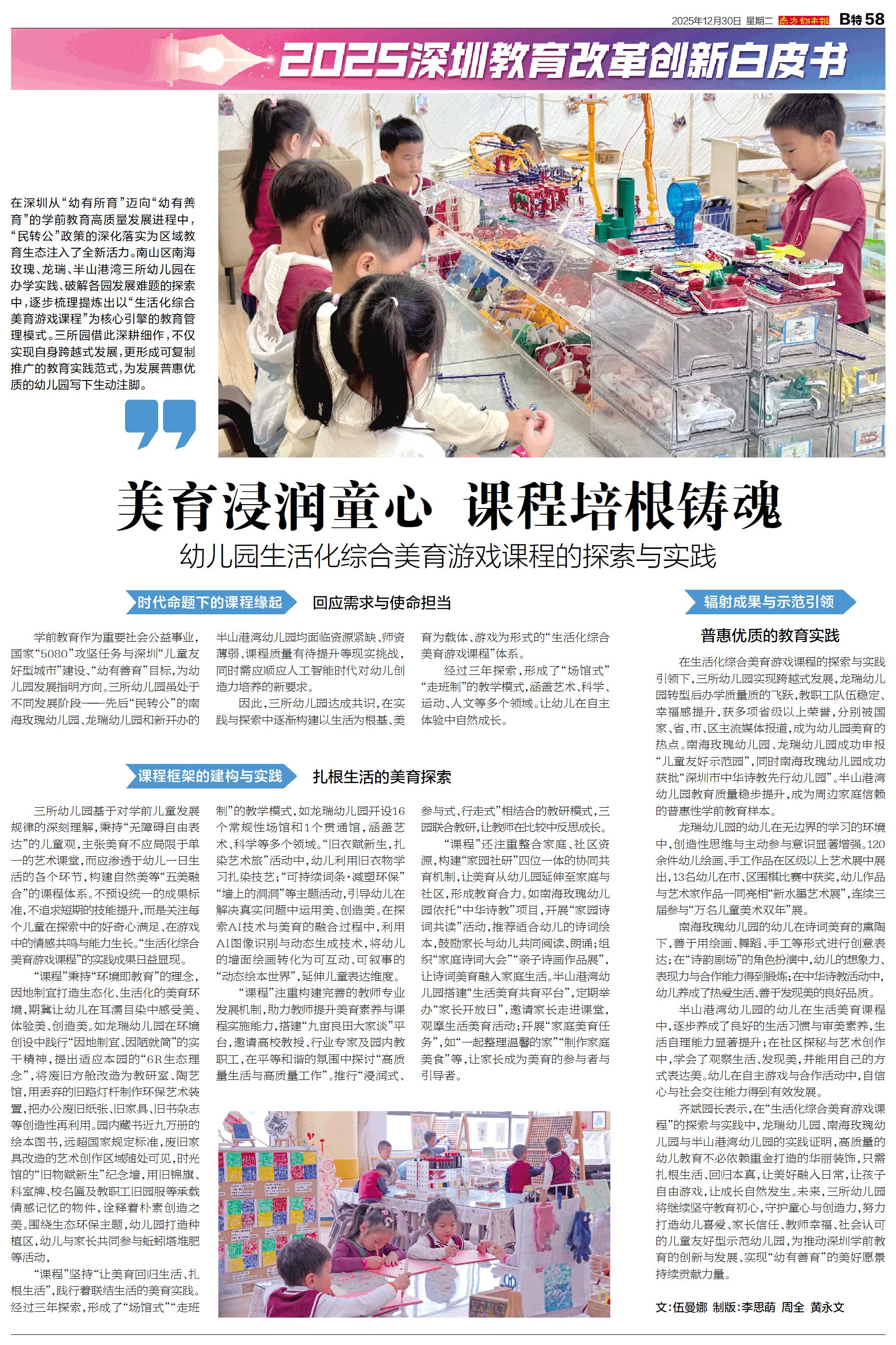 在深圳从“幼有所育”迈向“幼有善育”的学前教育高质量发展进程中,“民转公”政策的深化落实为区域教育生态注入了全新活力。南山区南海玫瑰、龙瑞、半山港湾三所幼儿园在办学实践、破解各园发展难题的探索中,