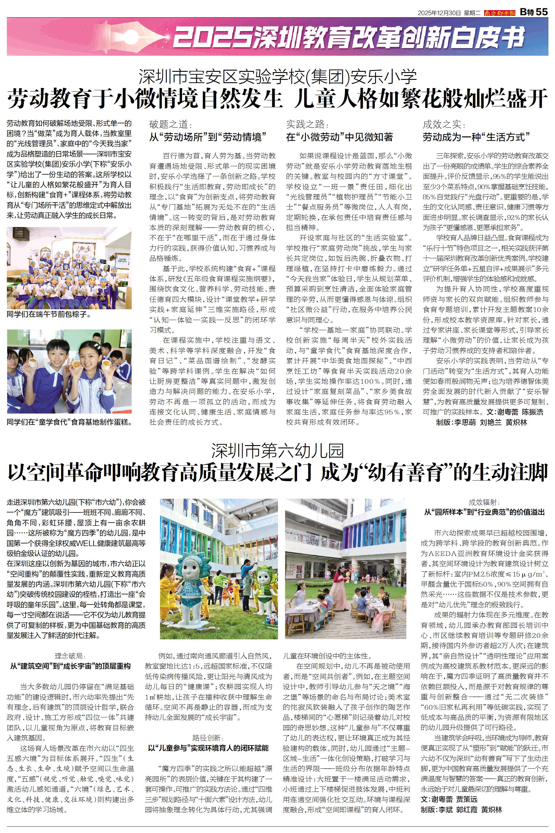 劳动教育如何破解场地受限、形式单一的困境?当“做菜”成为育人载体,当教室里的“光线管理员”、家庭中的“今天我当家”成为品格塑造的日常场景——深圳市宝安区实验学校(集团)安乐小学(下称“安乐小学”)