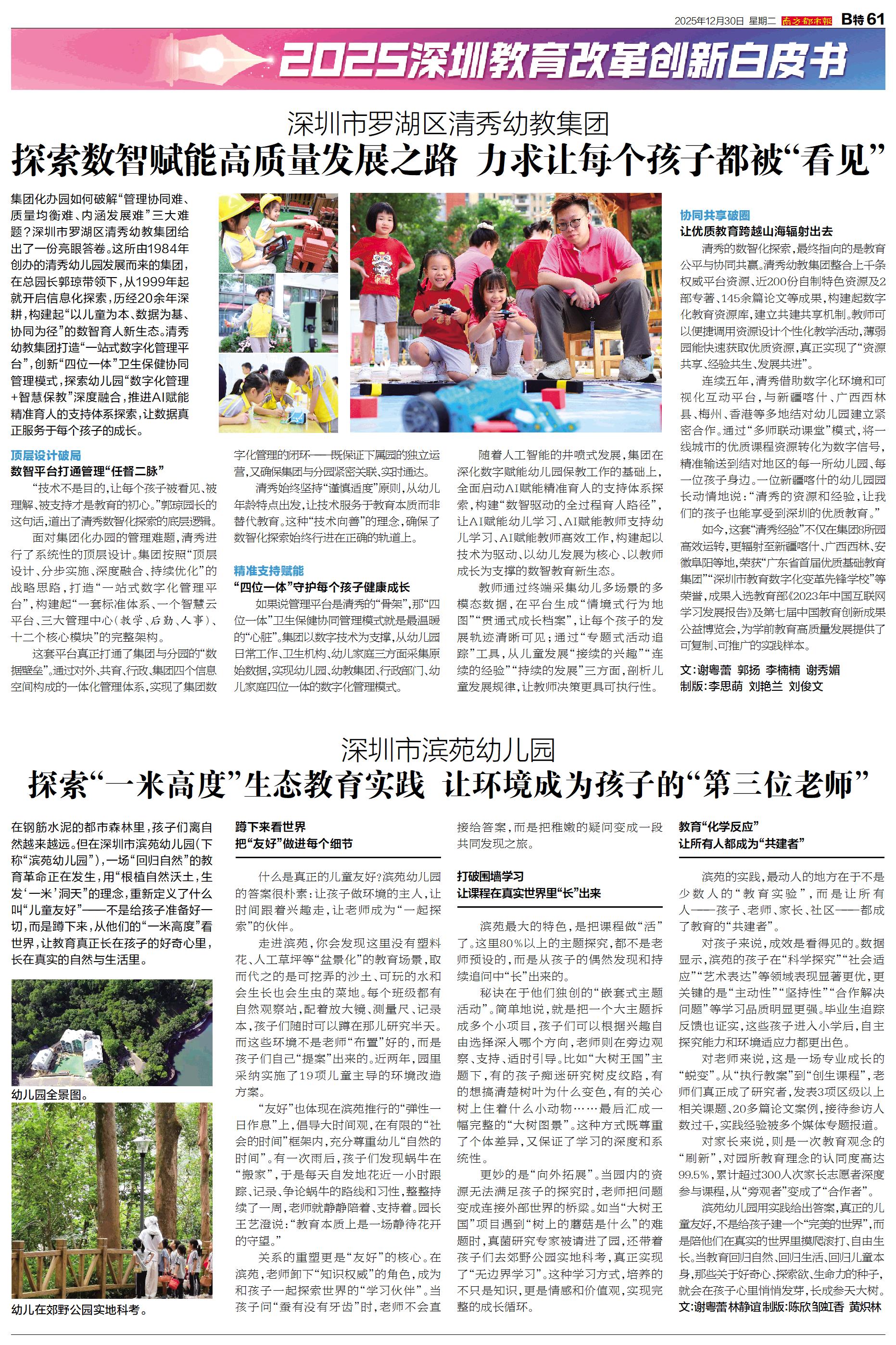 在钢筋水泥的都市森林里,孩子们离自然越来越远。但在深圳市滨苑幼儿园(下称“滨苑幼儿园”),一场“回归自然”的教育革命正在发生,用“根植自然沃土,生发‘一米’洞天”的理念,重新定义了什么叫“儿童友好