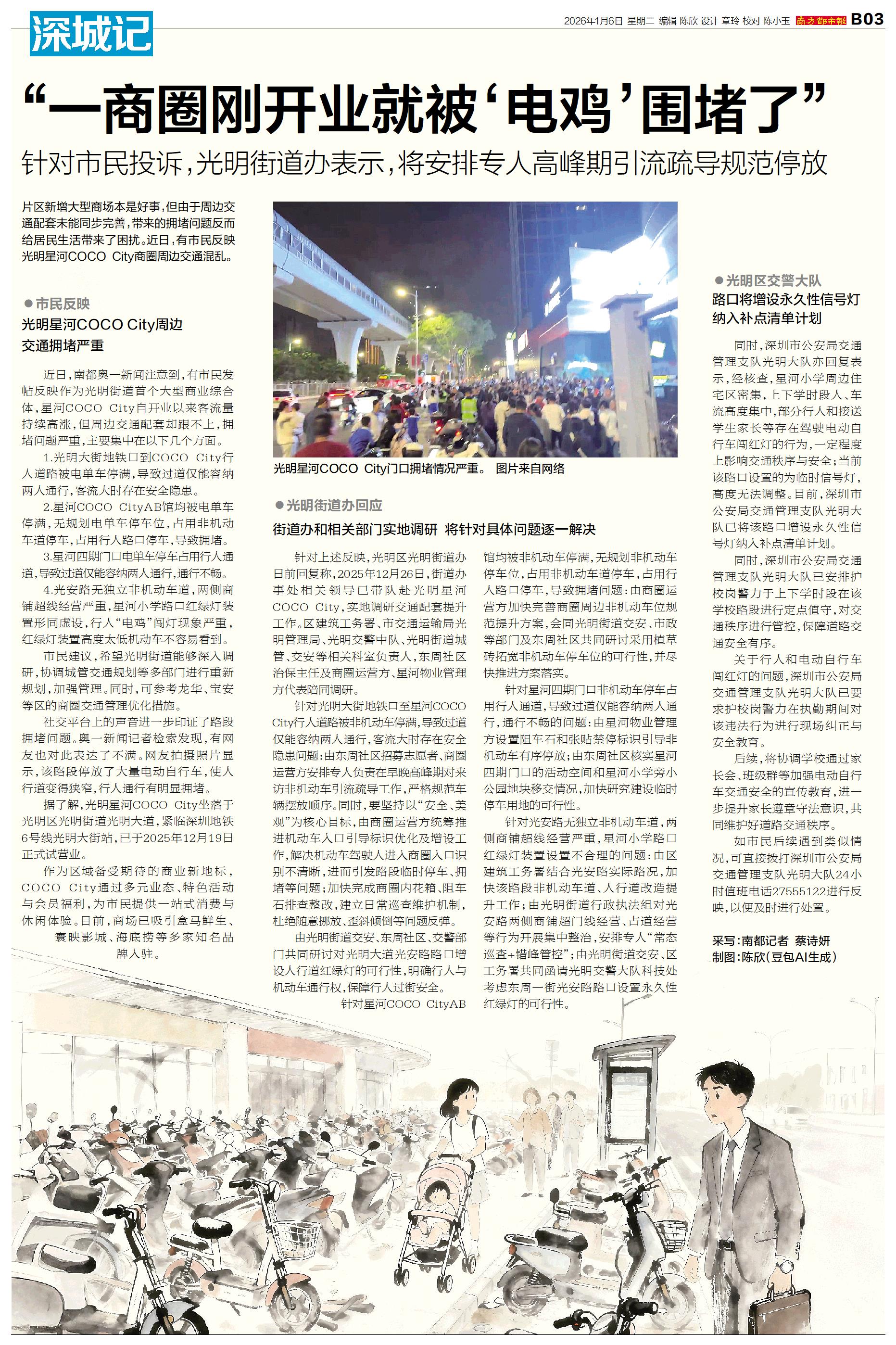 片区新增大型商场本是好事,但由于周边交通配套未能同步完善,带来的拥堵问题反而给居民生活带来了困扰。近日,有市民反映光明星河COCO City商圈周边交通混乱。 市民反映 光明星河COCO Cit