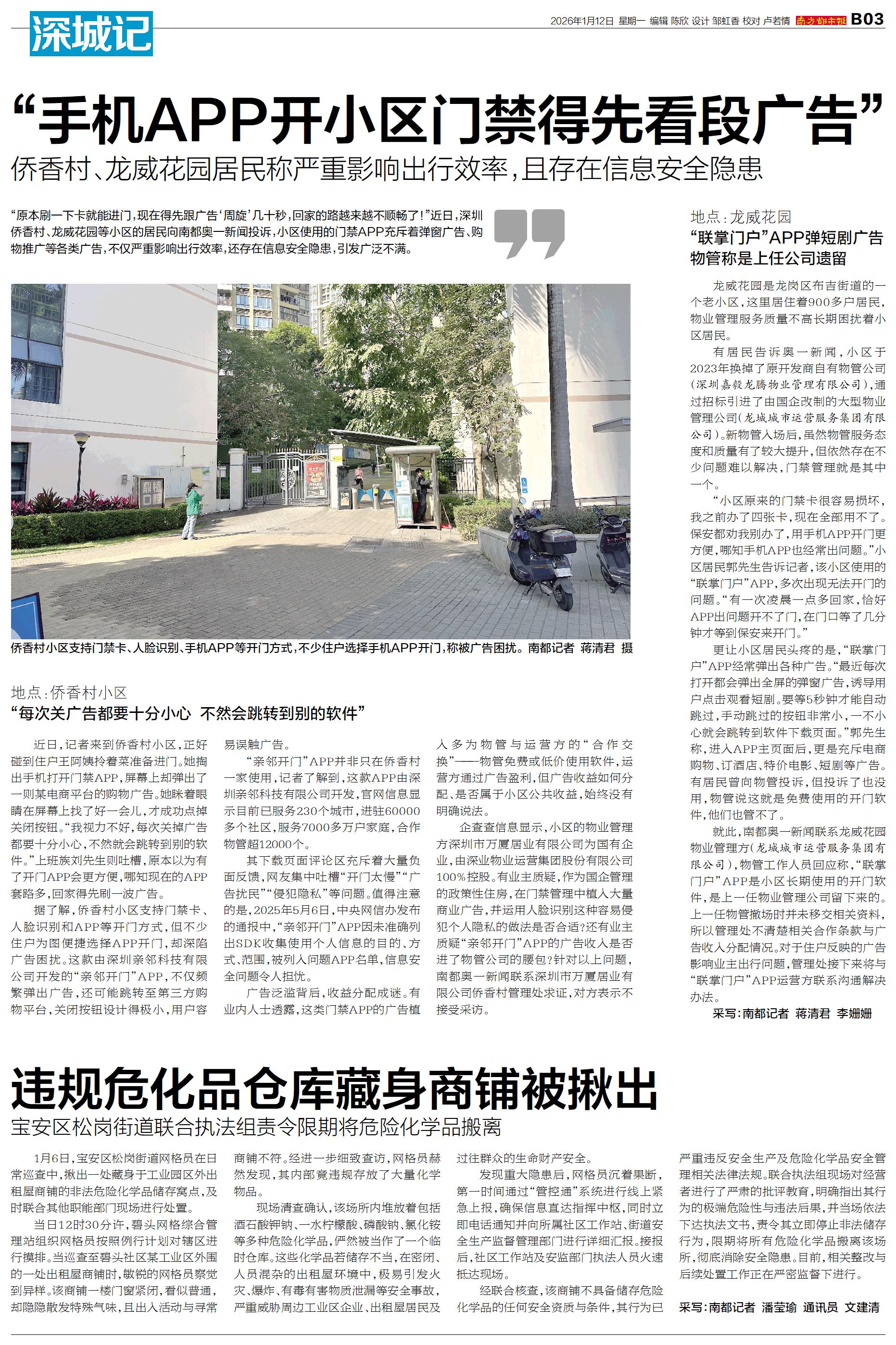 “原本刷一下卡就能进门,现在得先跟广告‘周旋’几十秒,回家的路越来越不顺畅了!”近日,深圳侨香村、龙威花园等小区的居民向南都奥一新闻投诉,小区使用的门禁APP充斥着弹窗广告、购物推广等各类广告,不