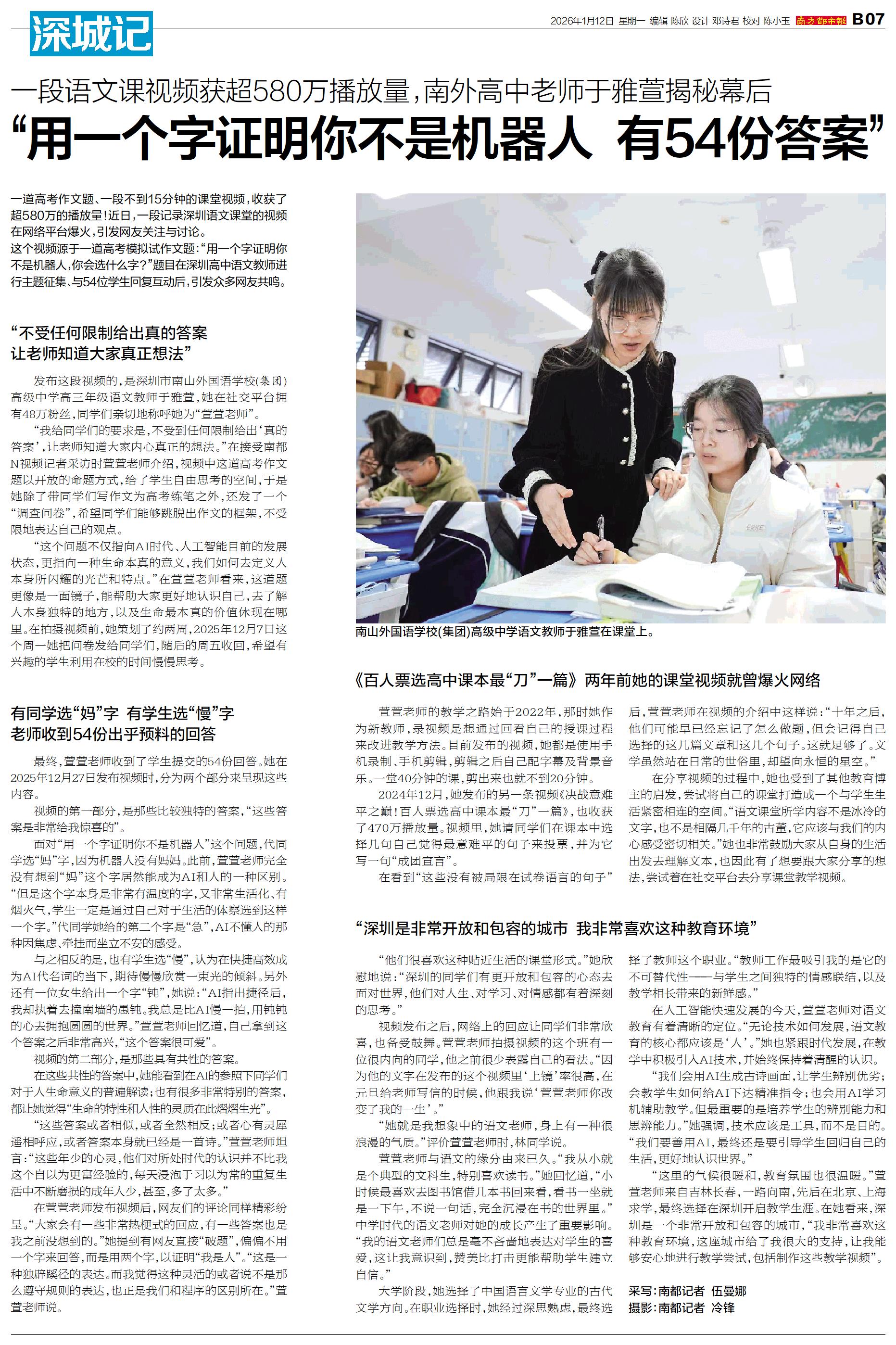 一道高考作文题、一段不到15分钟的课堂视频,收获了超580万的播放量!近日,一段记录深圳语文课堂的视频在网络平台爆火,引发网友关注与讨论。 这个视频源于一道高考模拟试作文题:“用一个字证明你不是