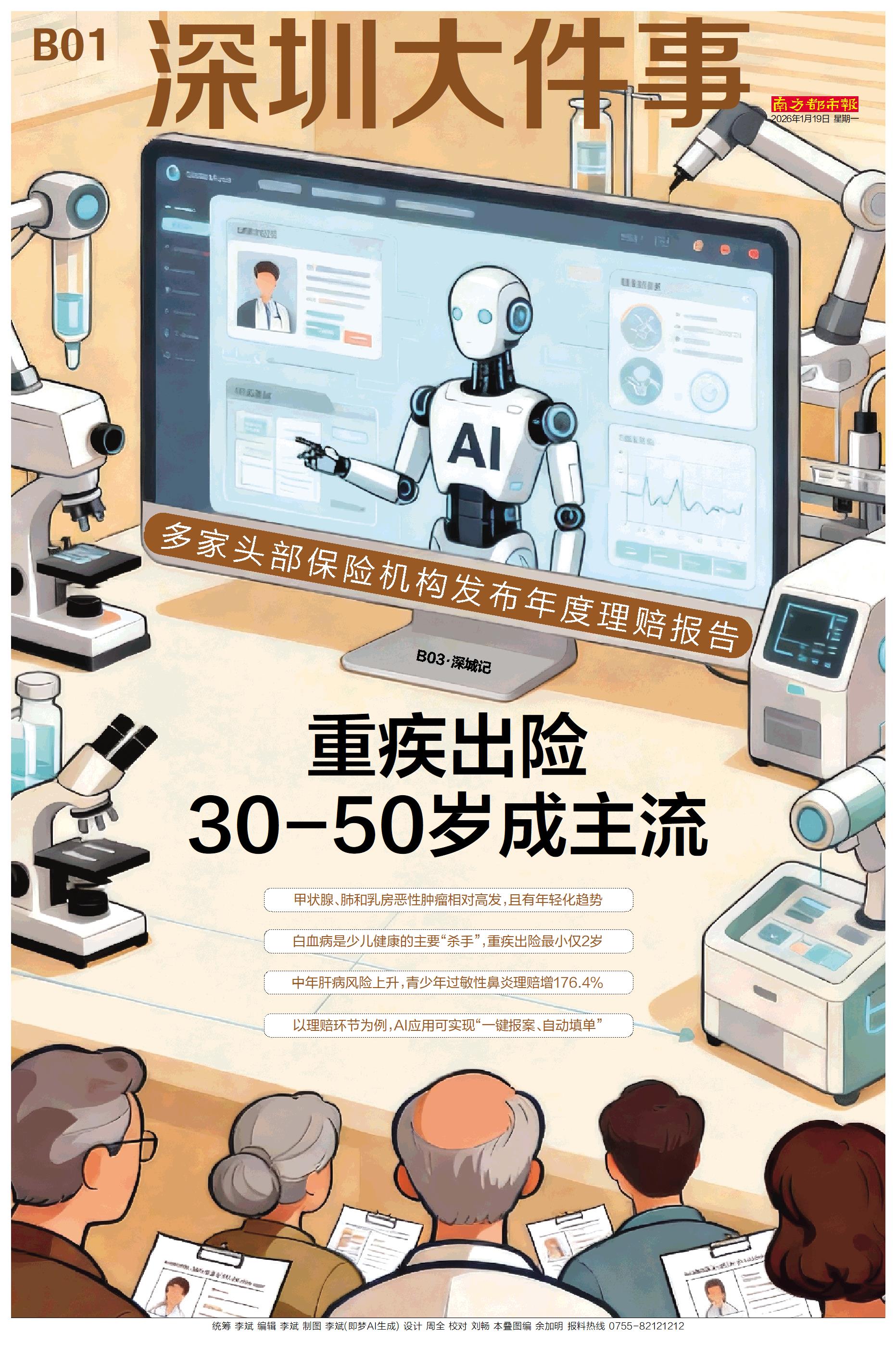 甲状腺、肺和乳房恶性肿瘤相对高发,且有年轻化趋势 白血病是少儿健康的主要“杀手”,重疾出险最小仅2岁 中年肝病风险上升,青少年过敏性鼻炎理赔增176.4% 以理赔环节为例,AI应用可实现“一