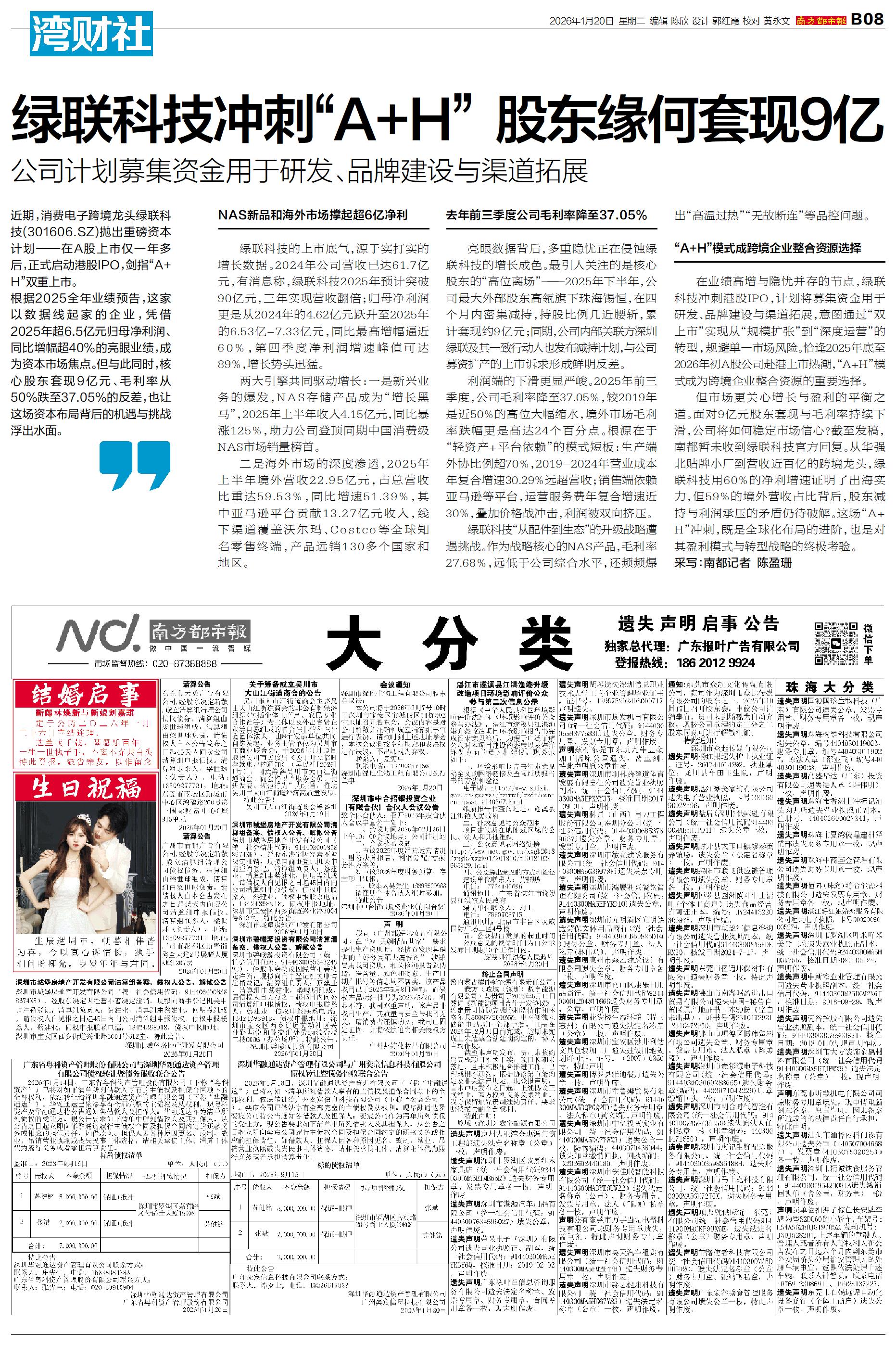 绿联科技冲刺“A+H”股东缘何套现9亿