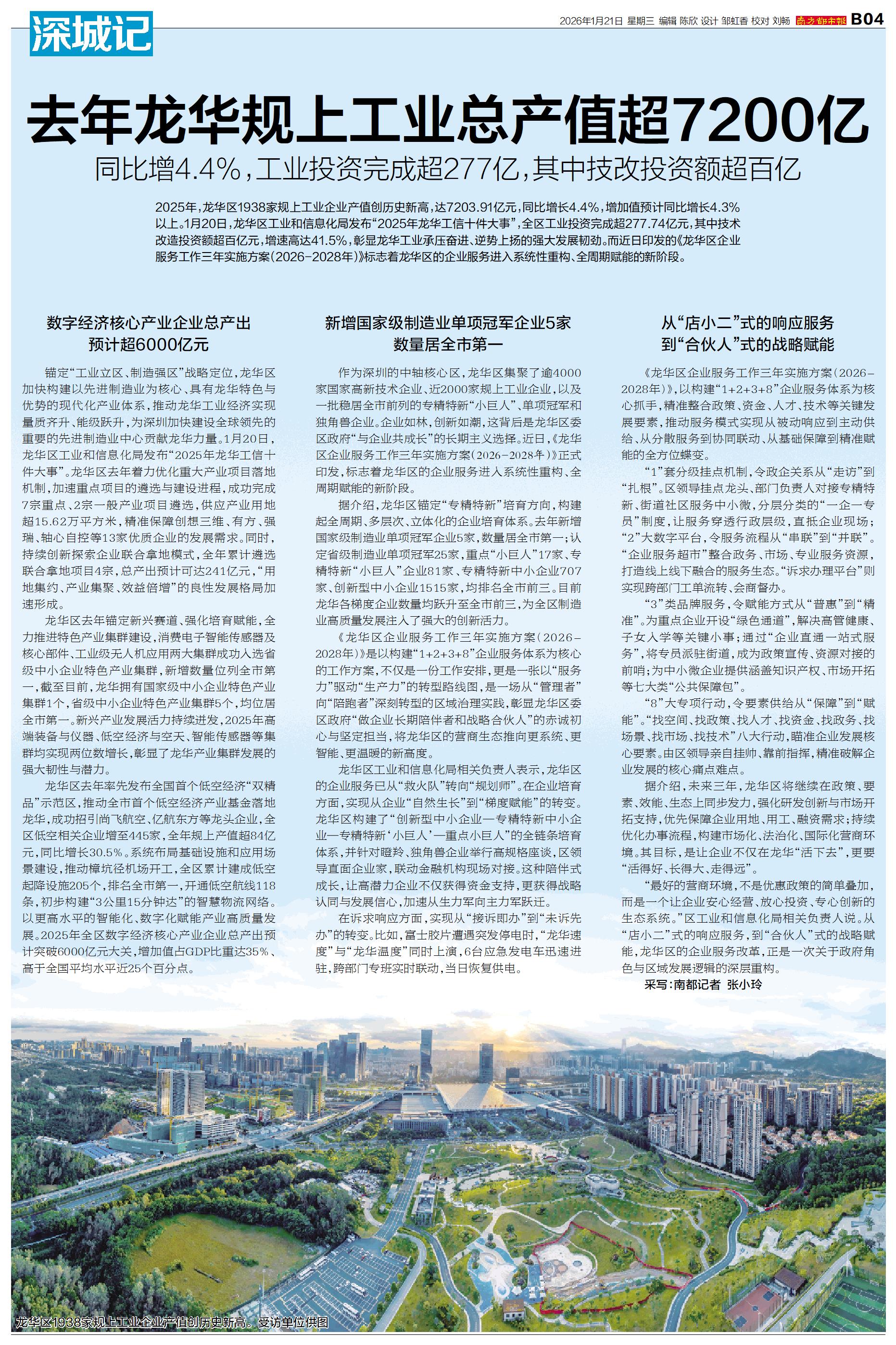 去年龙华规上工业总产值超7200亿