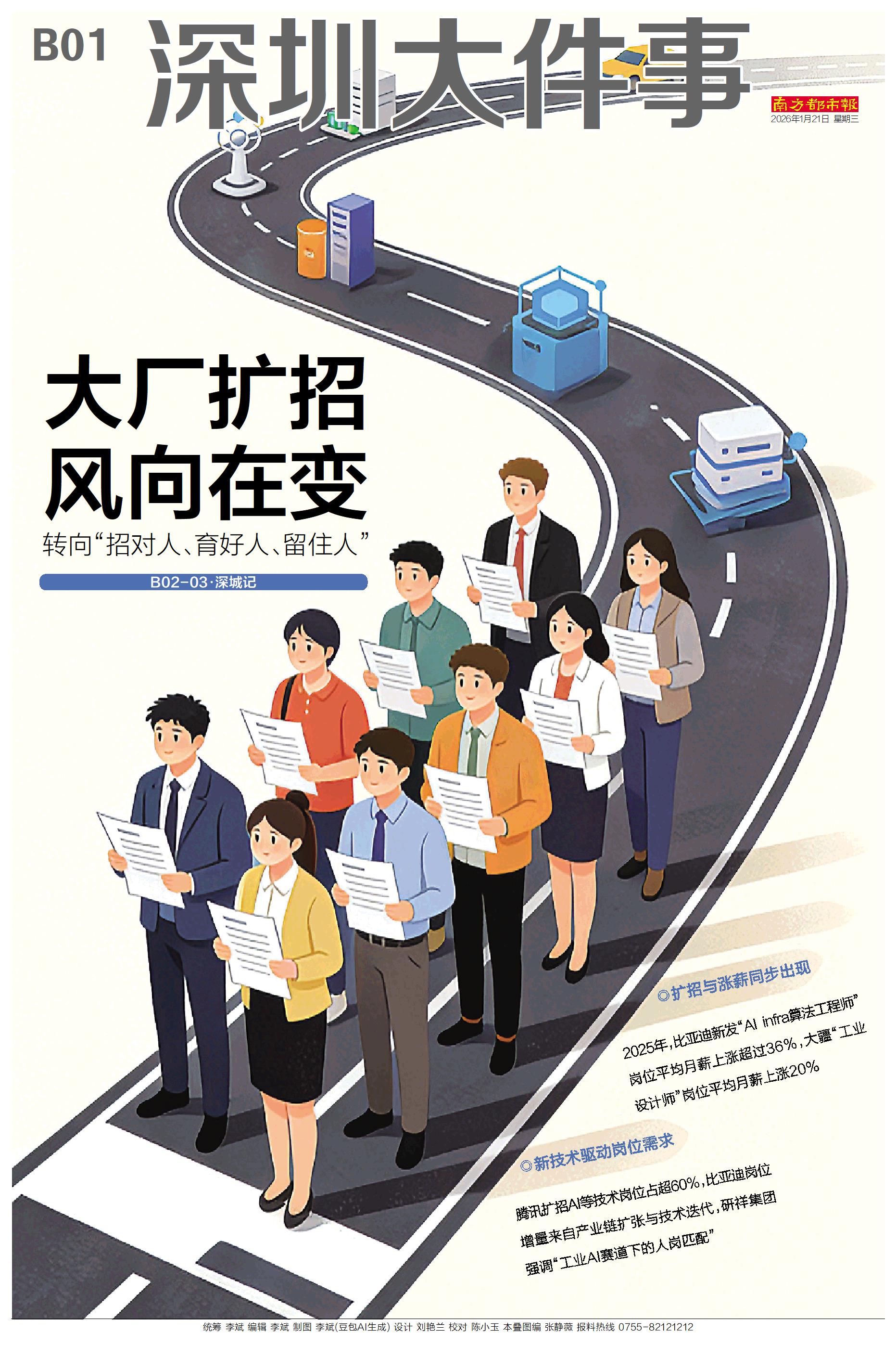 ◎扩招与涨薪同步出现 2025年,比亚迪新发“AI infra算法工程师”岗位平均月薪上涨超过36%,大疆“工业设计师”岗位平均月薪上涨20% ◎新技术驱动岗位需求 腾讯扩招AI等技术岗位占