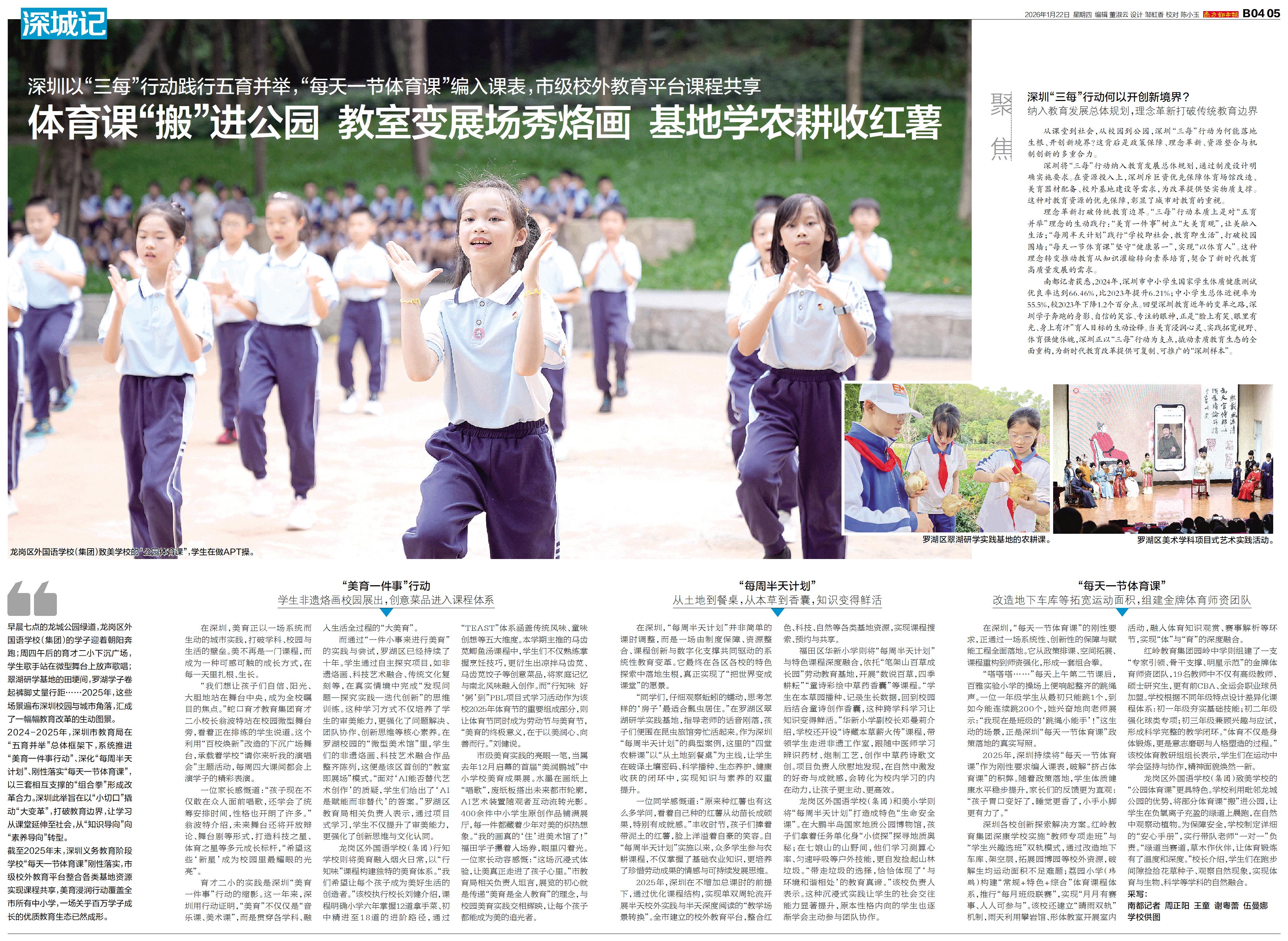 早晨七点的龙城公园绿道,龙岗区外国语学校(集团)的学子迎着朝阳奔跑;周四午后的育才二小下沉广场,学生歌手站在微型舞台上放声歌唱;翠湖研学基地的田埂间,罗湖学子卷起裤脚丈量行距……2025年,这些场