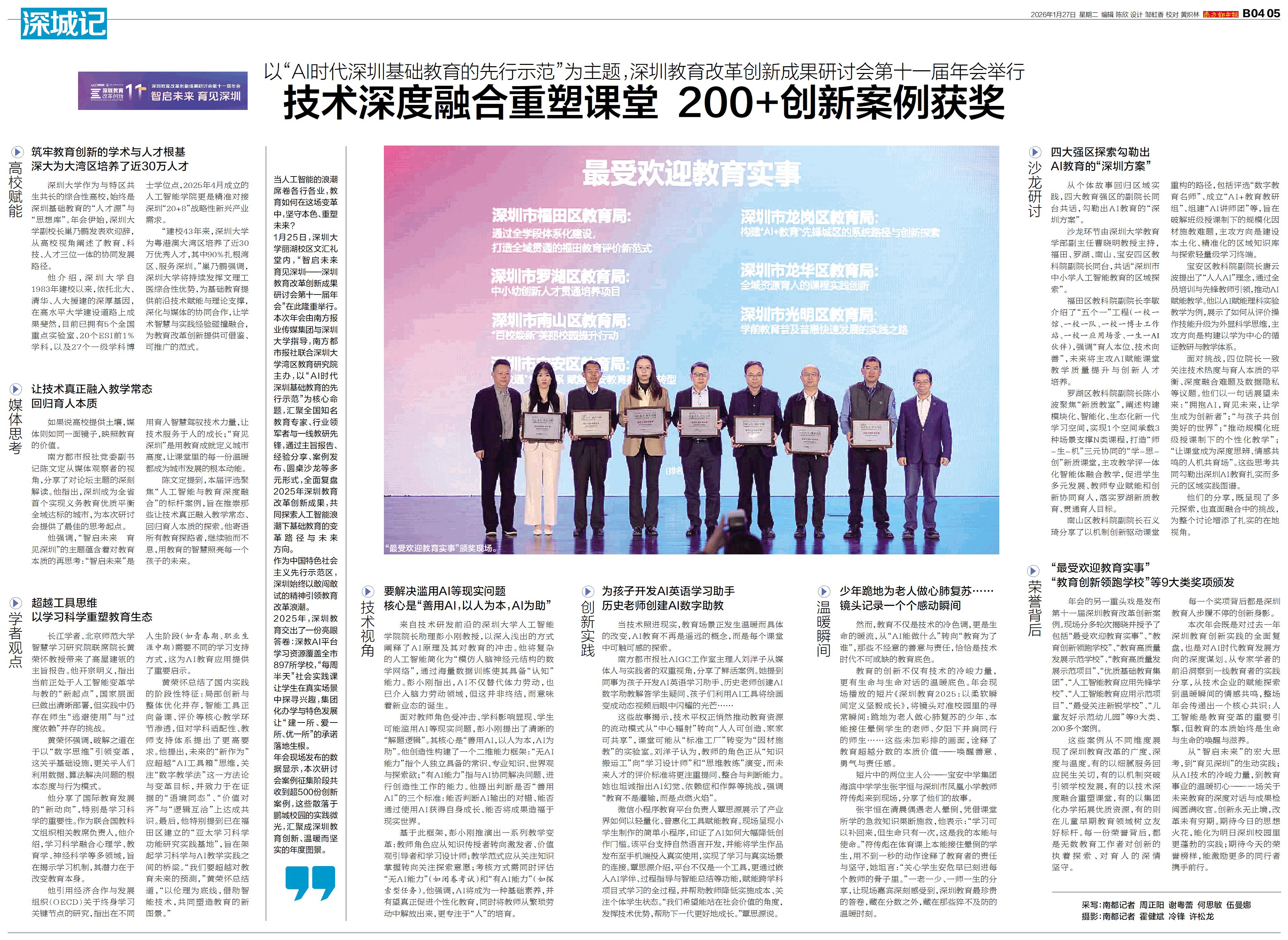 当人工智能的浪潮席卷各行各业,教育如何在这场变革中,坚守本色、重塑未来? 1月25日,深圳大学丽湖校区文汇礼堂内,“智启未来 育见深圳——深圳教育改革创新成果研讨会第十一届年会”在此隆重举行。