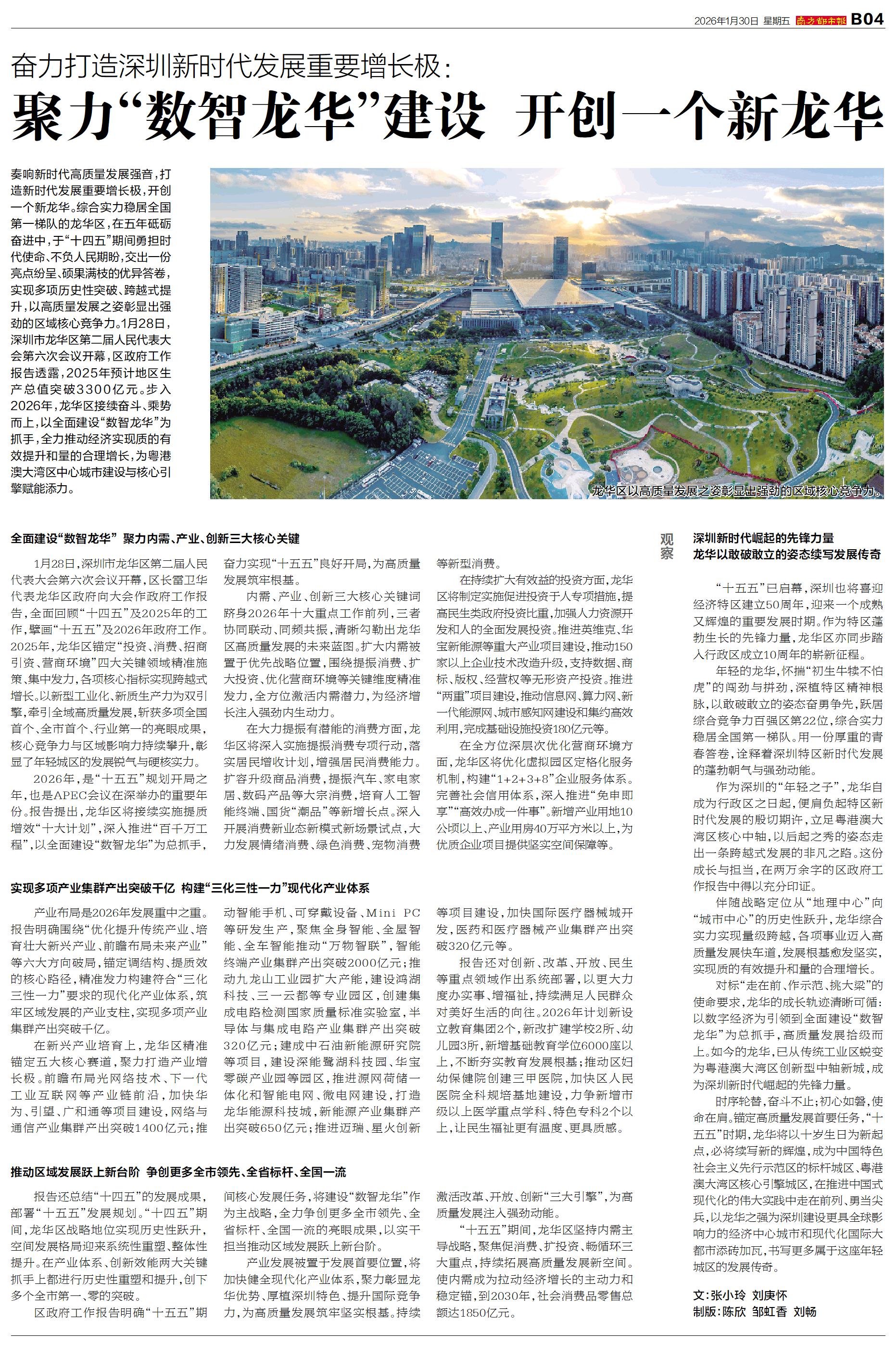 奏响新时代高质量发展强音,打造新时代发展重要增长极,开创一个新龙华。综合实力稳居全国第一梯队的龙华区,在五年砥砺奋进中,于“十四五”期间勇担时代使命、不负人民期盼,交出一份亮点纷呈、硕果满枝的优异