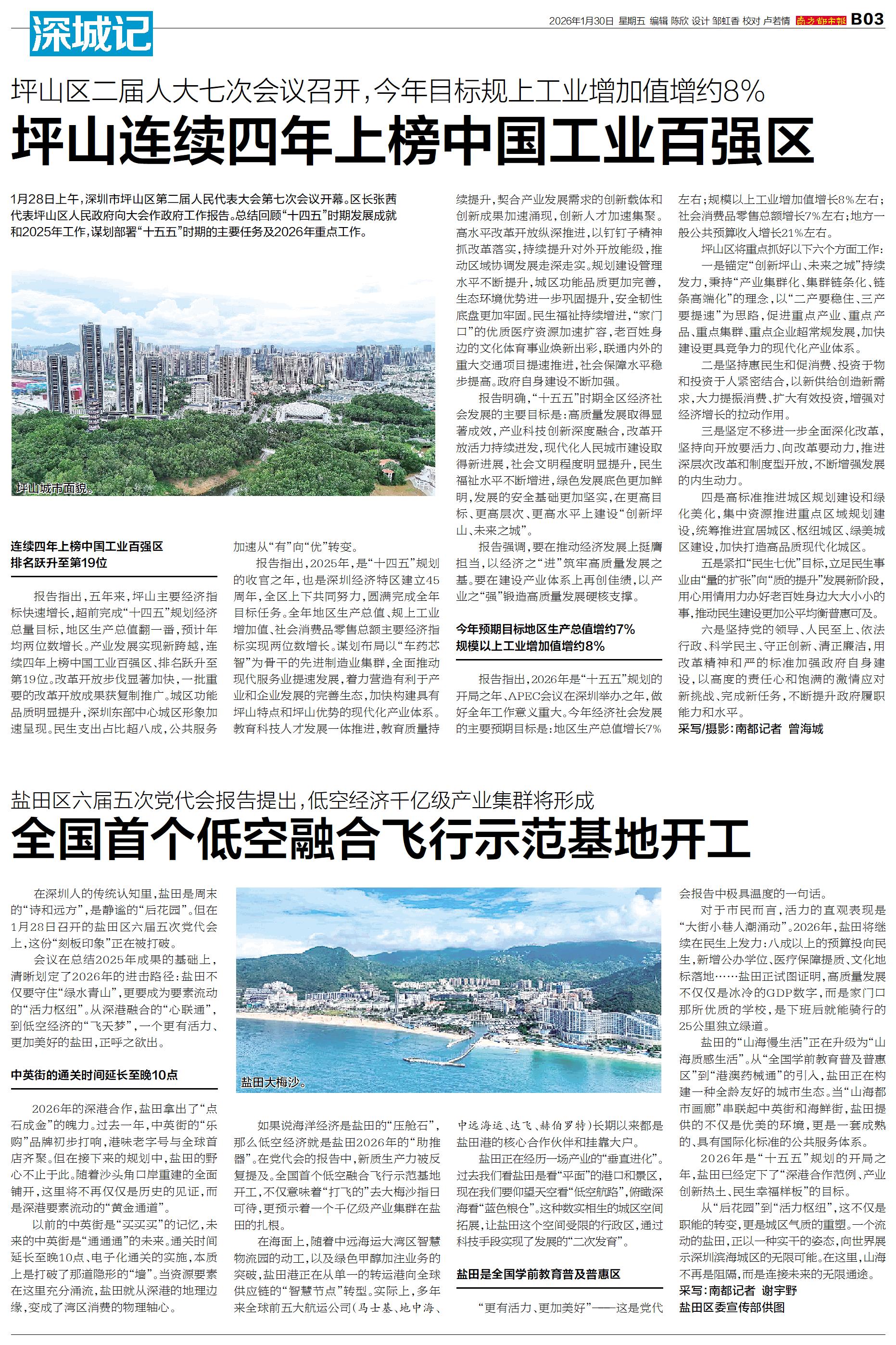 在深圳人的传统认知里,盐田是周末的“诗和远方”,是静谧的“后花园”。但在1月28日召开的盐田区六届五次党代会上,这份“刻板印象”正在被打破。 会议在总结2025年成果的基础上,清晰划定了2026
