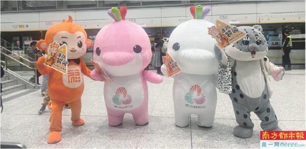 活动现场,萌趣IP天团集体亮相。十五运会吉祥物“喜洋洋”“乐融融”、福田“福气家族”和中国电视报吉祥物“豹豹”组团在深圳地铁岗厦北站巡游,与市民互动。IP天团造型憨态可掬,走到哪儿都是焦点。