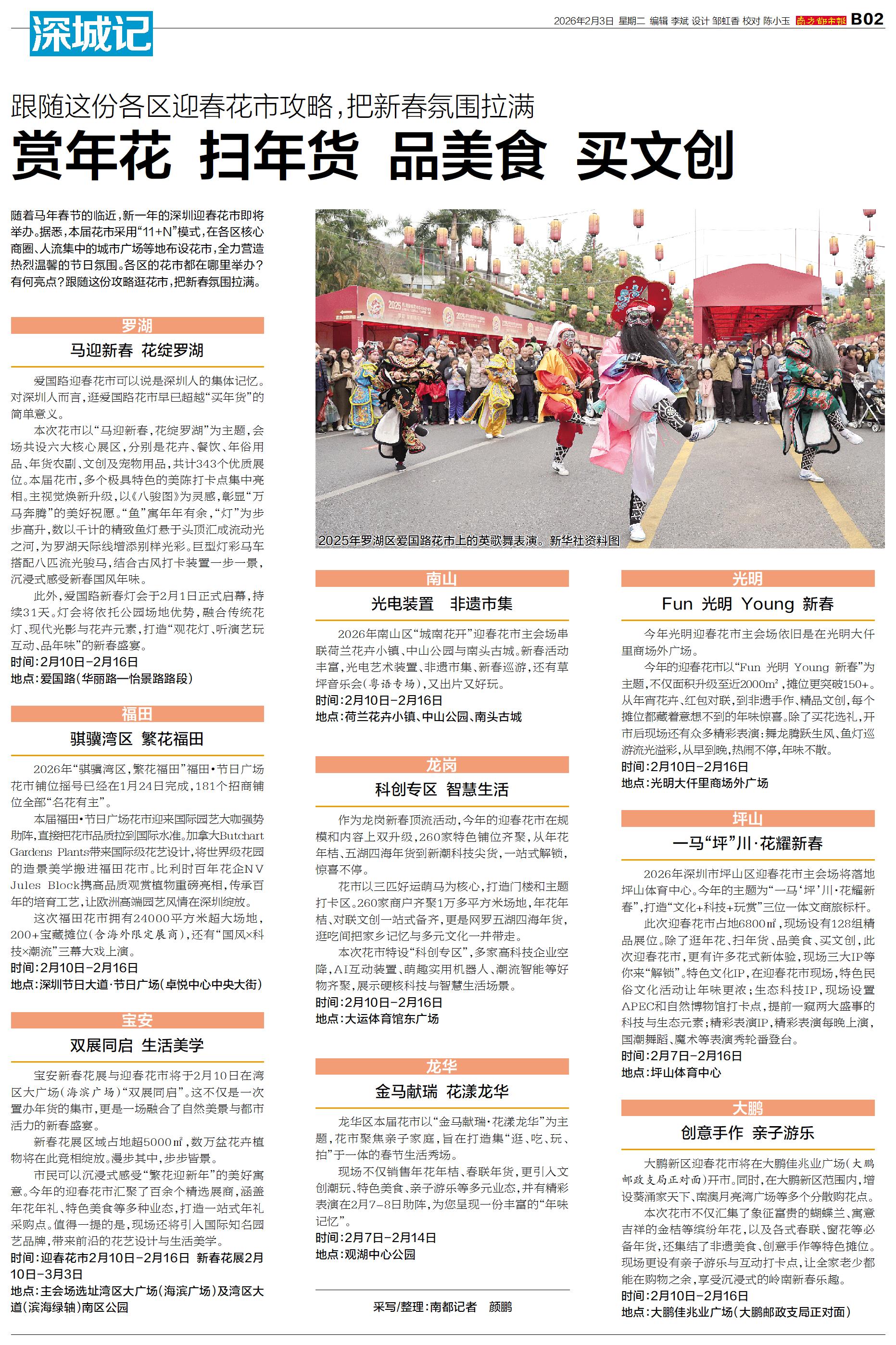 随着马年春节的临近,新一年的深圳迎春花市即将举办。据悉,本届花市采用“11+N”模式,在各区核心商圈、人流集中的城市广场等地布设花市,全力营造热烈温馨的节日氛围。各区的花市都在哪里举办?有何亮点?