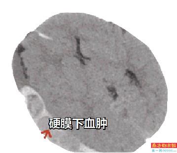 CT显示硬膜下血肿及脑疝。