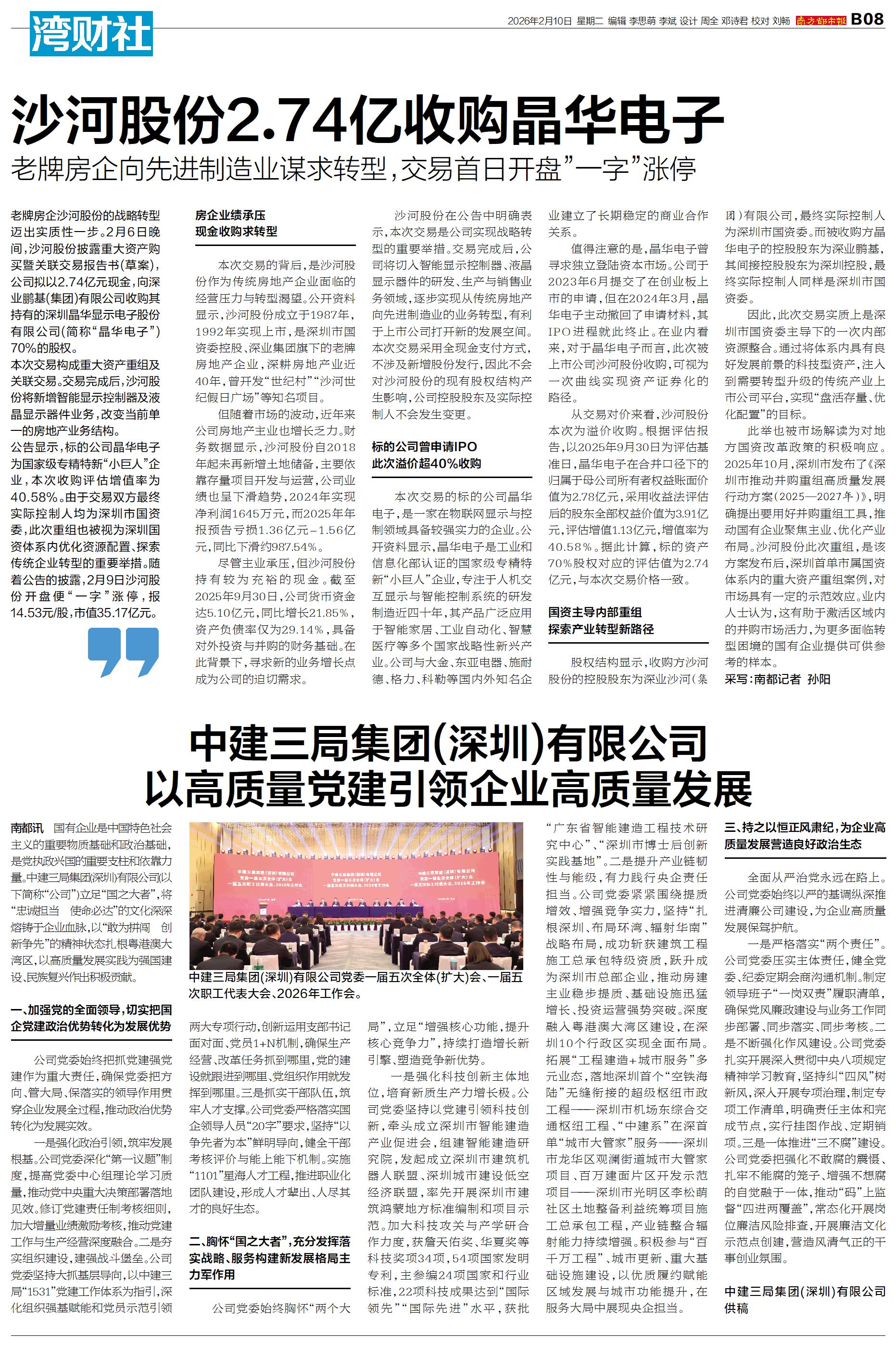 中建三局集团(深圳)有限公司 以高质量党建引领企业高质量发展