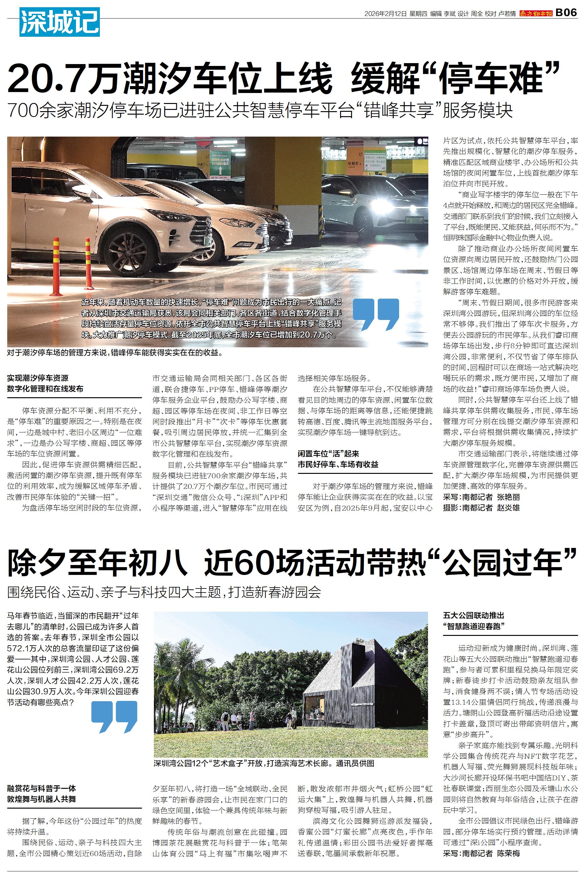 马年春节临近,当留深的市民翻开“过年去哪儿”的清单时,公园已成为许多人首选的答案。去年春节,深圳全市公园以572.1万人次的总客流量印证了这份偏爱——其中,深圳湾公园、人才公园、莲花山公园位列前三