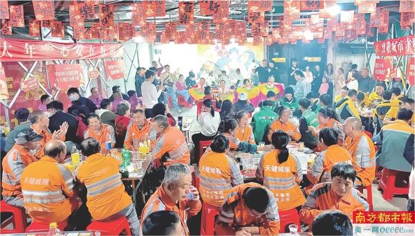 南都讯 记者颜鹏 2月11日,农历腊月廿四南方小年,一大早,深圳龙岗坂田街道的“少年烤鸡”店店主陈钟创就奔赴市场多买了些菜。这天他要精心准备一场免费的“小年饭”。这场年饭的主角不是别人,正是百位“城市守护者”——环卫工人、外卖骑手和社区志愿者。
