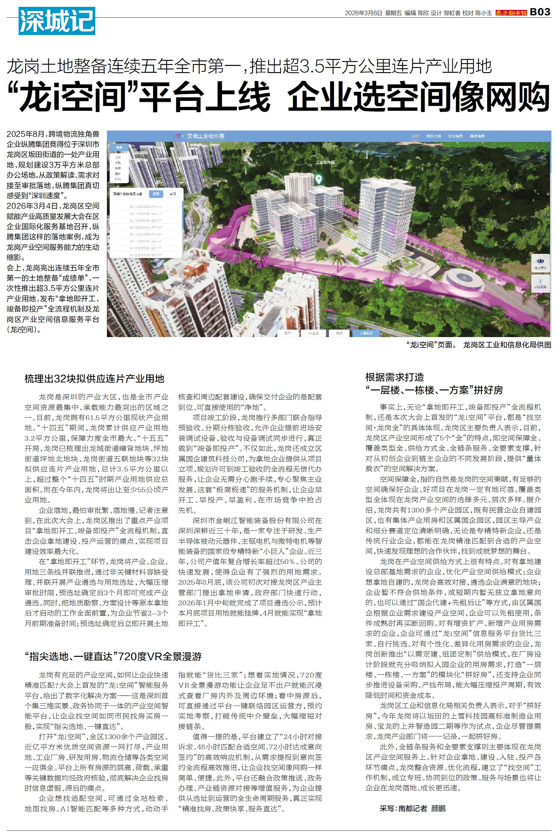 2025年8月,跨境物流独角兽企业纵腾集团竞得位于深圳市龙岗区坂田街道的一处产业用地,规划建设3万平方米总部办公场地。从政策解读、需求对接至审批落地,纵腾集团真切感受到“深圳速度”。 2026年