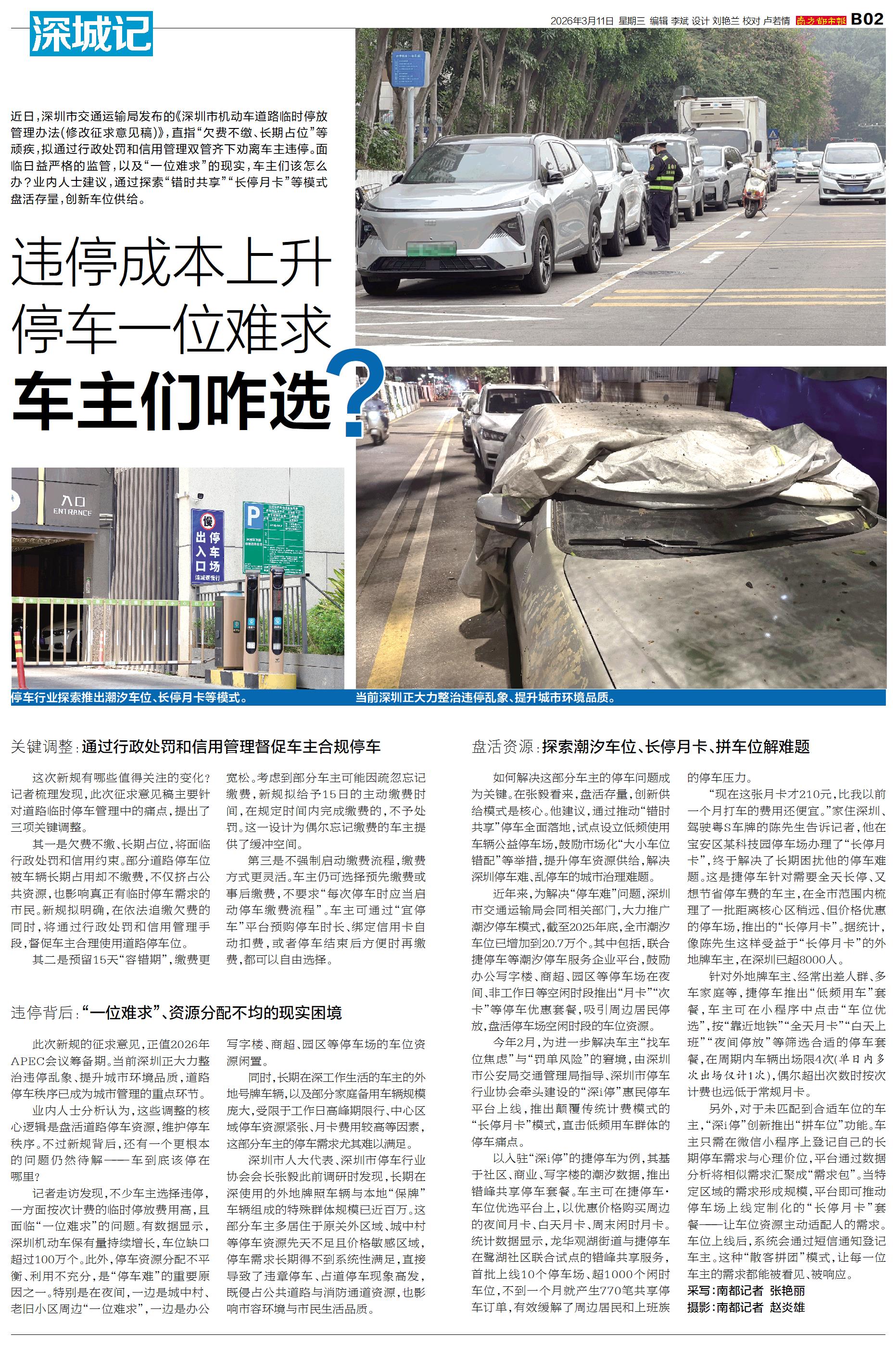 近日,深圳市交通运输局发布的《深圳市机动车道路临时停放管理办法(修改征求意见稿)》,直指“欠费不缴、长期占位”等顽疾,拟通过行政处罚和信用管理双管齐下劝离车主违停。面临日益严格的监管,以及“一位难