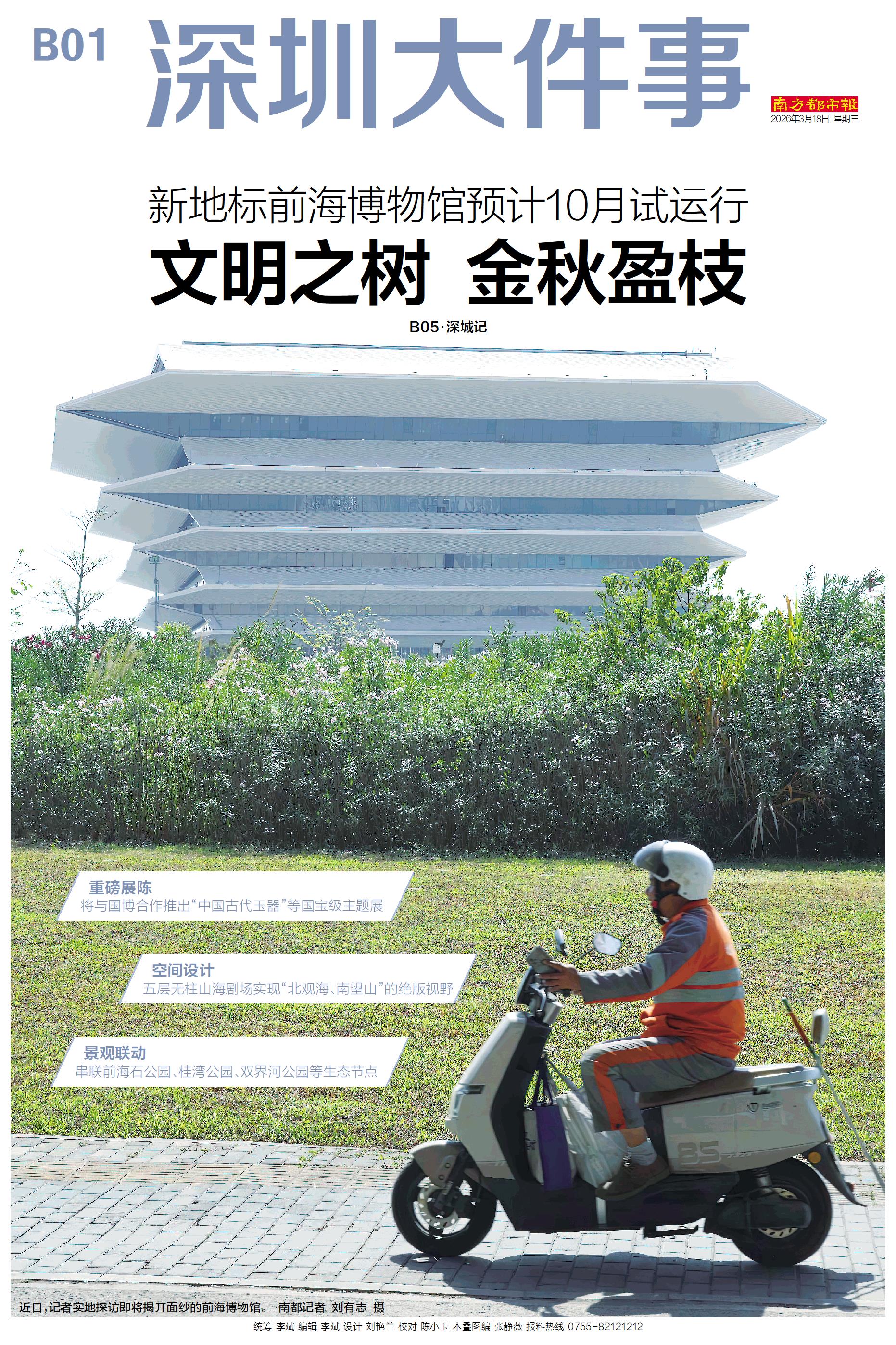 重磅展陈 将与国博合作推出“中国古代玉器”等国宝级主题展 空间设计 五层无柱山海剧场实现“北观海、南望山”的绝版视野 景观联动 串联前海石公园、桂湾公园、双界河公园等生态节点 B05·深城记