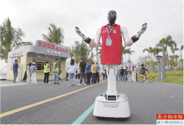 服务站内有“精兵强将”值守,公园中则有“智慧卫士”巡逻。“小辰”“小量”等智能机器人穿梭在公园,搭载视觉识别系统,身兼“安全员”与“流动宣传员”双重身份,通过实时巡逻提醒、公告播报等,将文明理念传递给市民游客。“我对深圳志愿者的印象是亲和又专业,现在更是科技感满满了,这一幕太超前了!”骑行经过的文女士特意停车驻足观望,语气里满是惊喜。