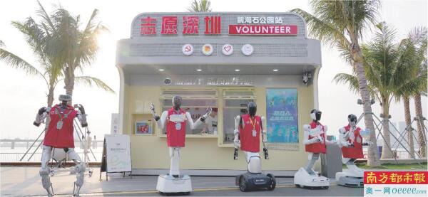 近日,深圳前海石公园机器人志愿服务站里,一群特殊的“志愿新伙伴”集中亮相,瞬间成为园区“顶流”,吸引了众多市民游客打卡互动。