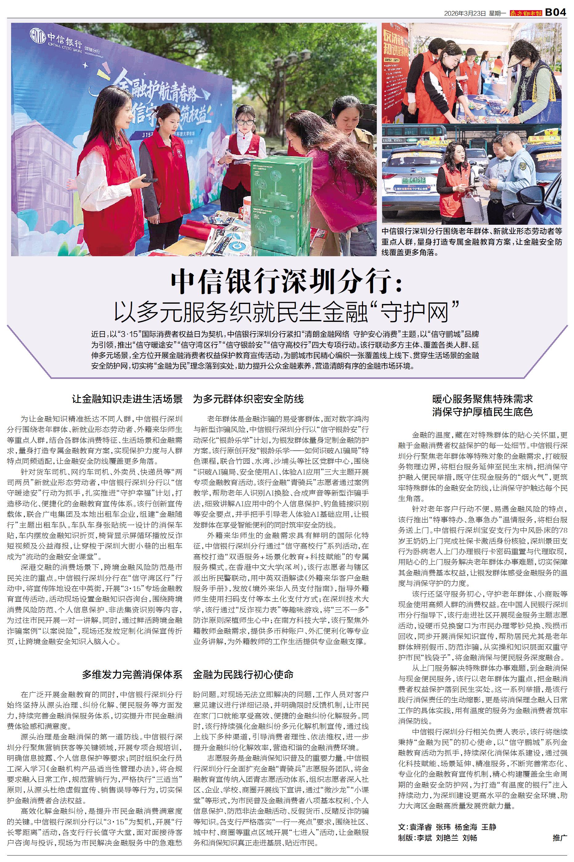 中信银行深圳分行:以多元服务织就民生金融“守护网”