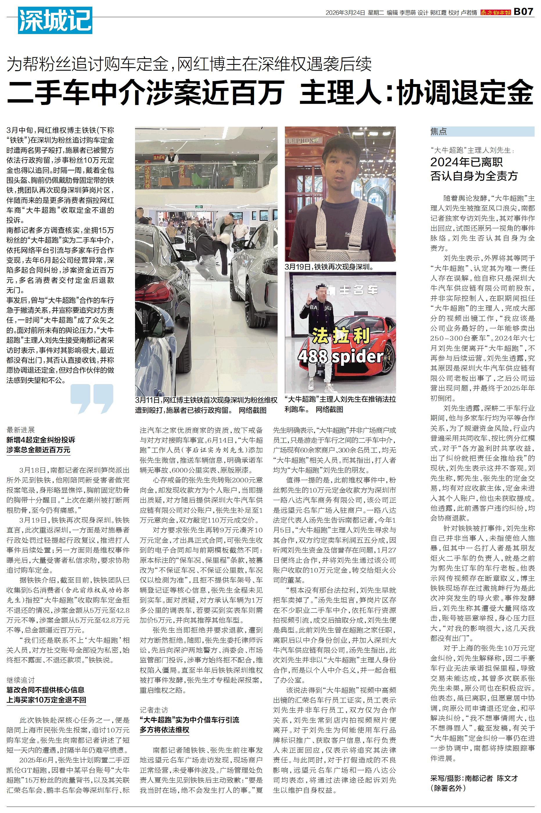 3月中旬,网红维权博主铁铁(下称“铁铁”)在深圳为粉丝追讨购车定金时遭两名男子殴打,施暴者已被警方依法行政拘留,涉事粉丝10万元定金也得以追回。时隔一周,戴着全包围头盔、胸前仍佩戴肋骨固定带的铁铁
