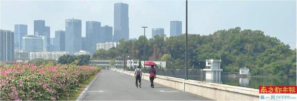 西丽水库大坝已成周边市民休闲打卡点,现场开放路段全程约1.8公里。