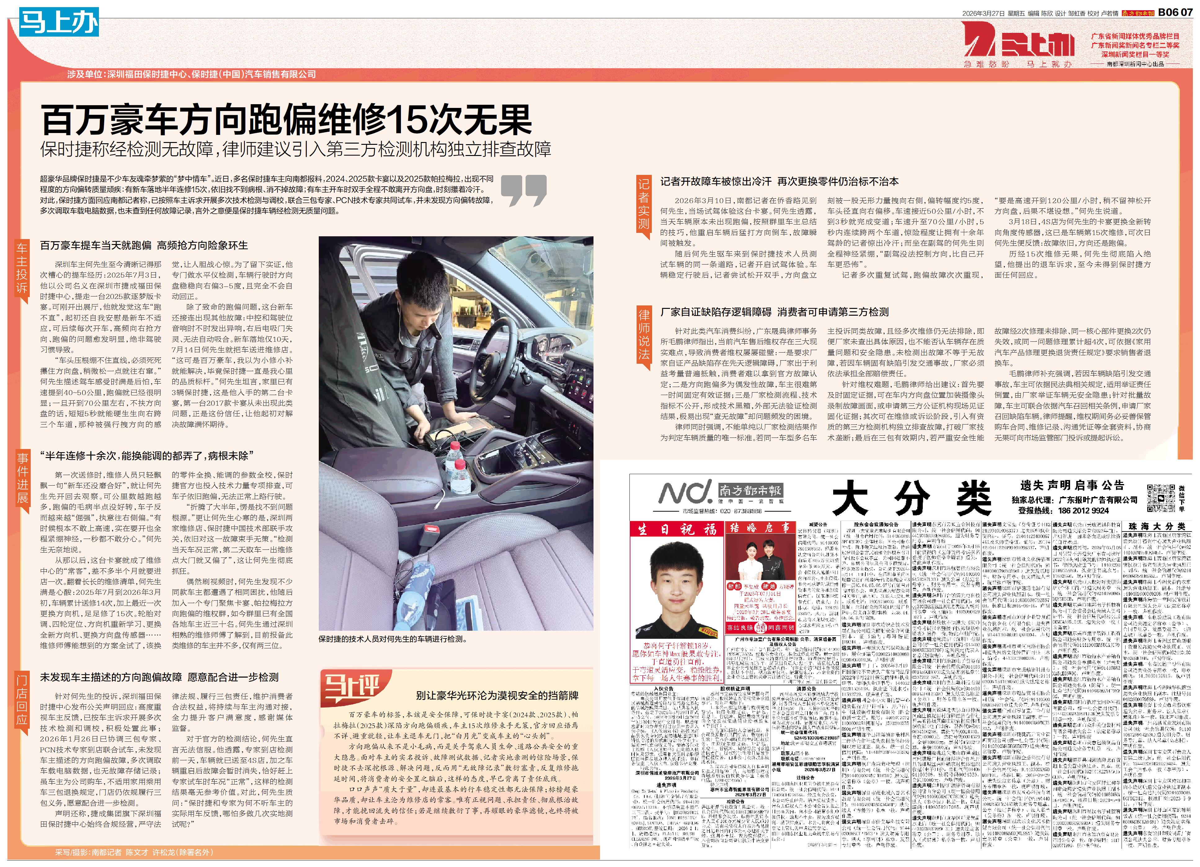 涉及单位:深圳福田保时捷中心、保时捷(中国)汽车销售有限公司 超豪华品牌保时捷是不少车友魂牵梦萦的“梦中情车”。近日,多名保时捷车主向南都报料,2024、2025款卡宴以及2025款帕拉梅拉,出