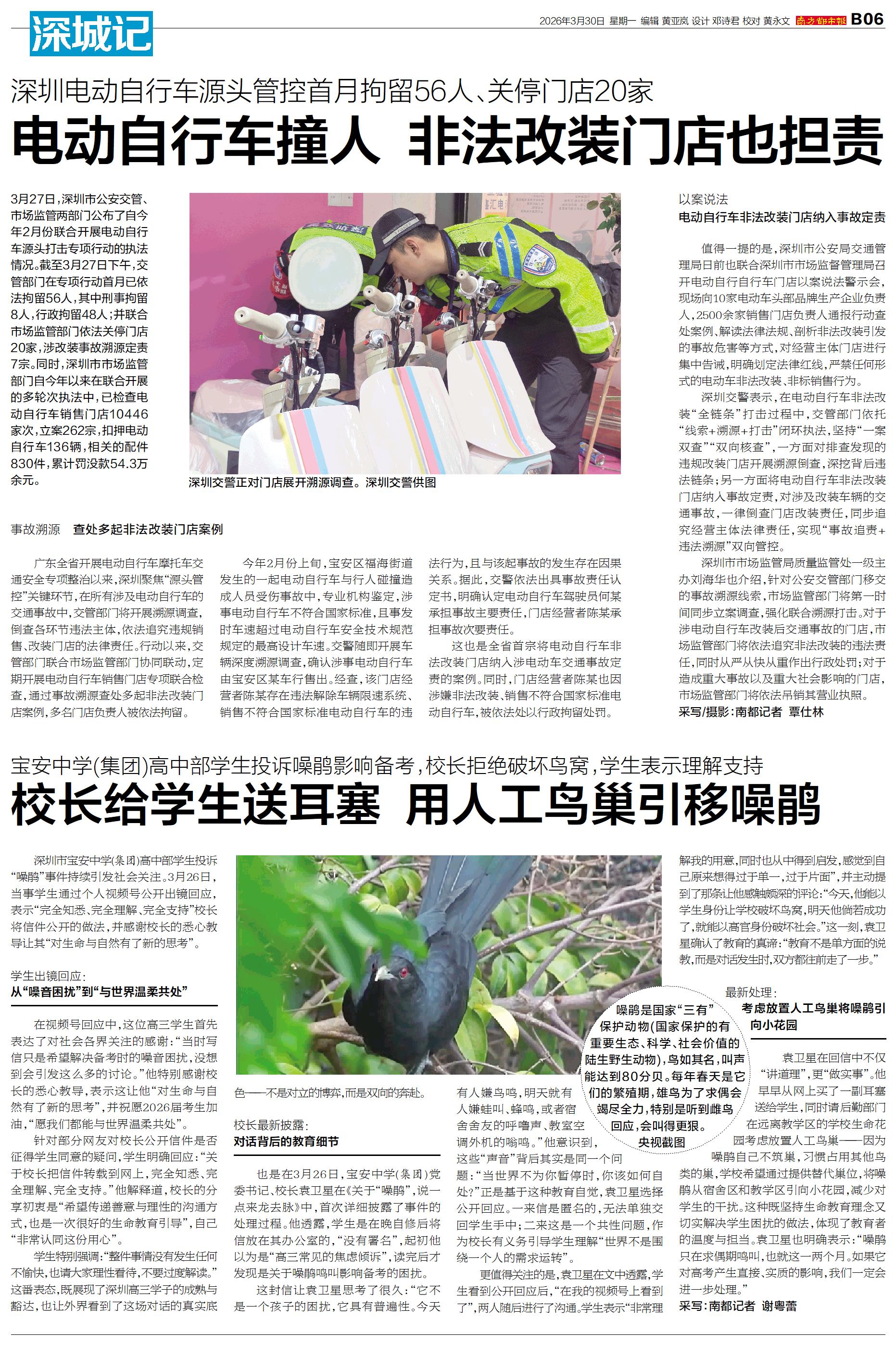 深圳市宝安中学(集团)高中部学生投诉“噪鹃”事件持续引发社会关注。3月26日,当事学生通过个人视频号公开出镜回应,表示“完全知悉、完全理解、完全支持”校长将信件公开的做法,并感谢校长的悉心教导让其