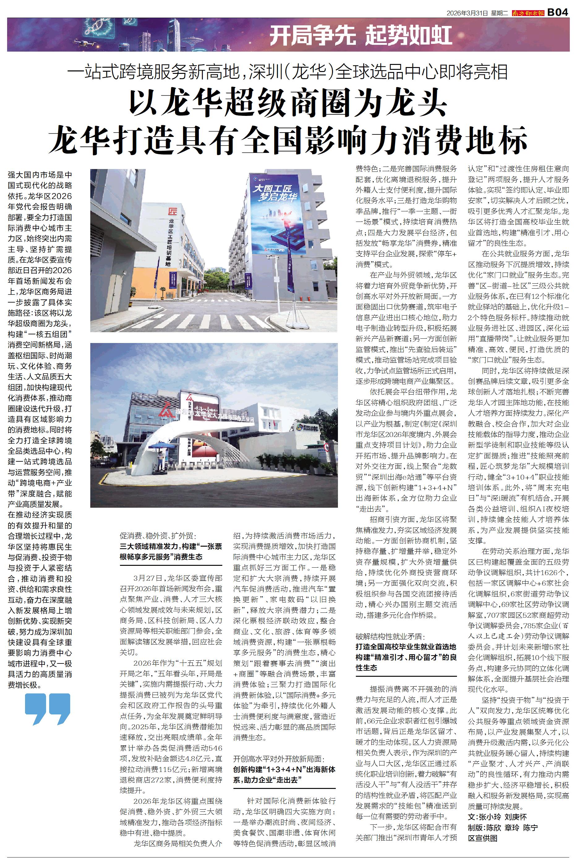 强大国内市场是中国式现代化的战略依托。龙华区2026年党代会报告明确部署,要全力打造国际消费中心城市主力区,始终突出内需主导、坚持扩需提质。在龙华区委宣传部近日召开的2026年首场新